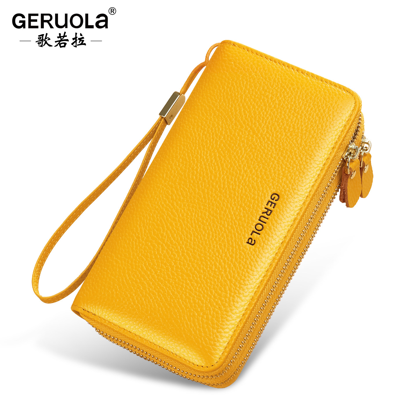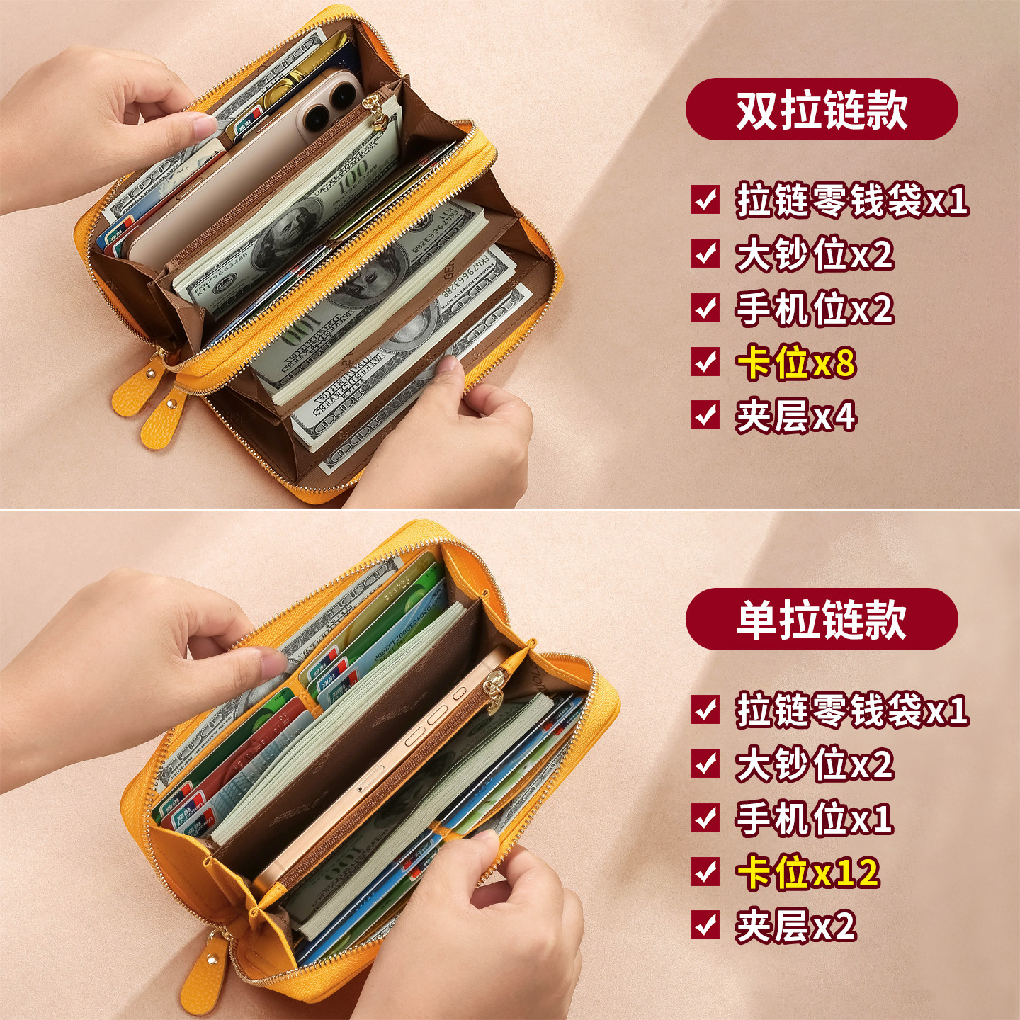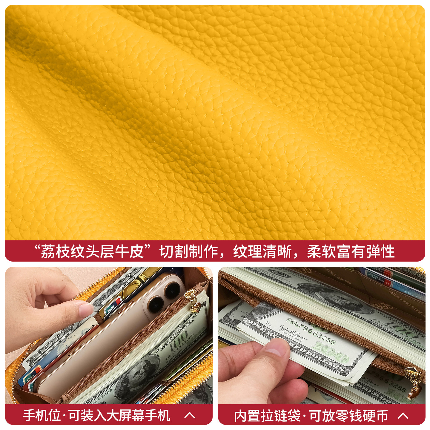 女士钱包女长款2025新款头层牛皮招财黄色大容量手拿包双拉链聚财