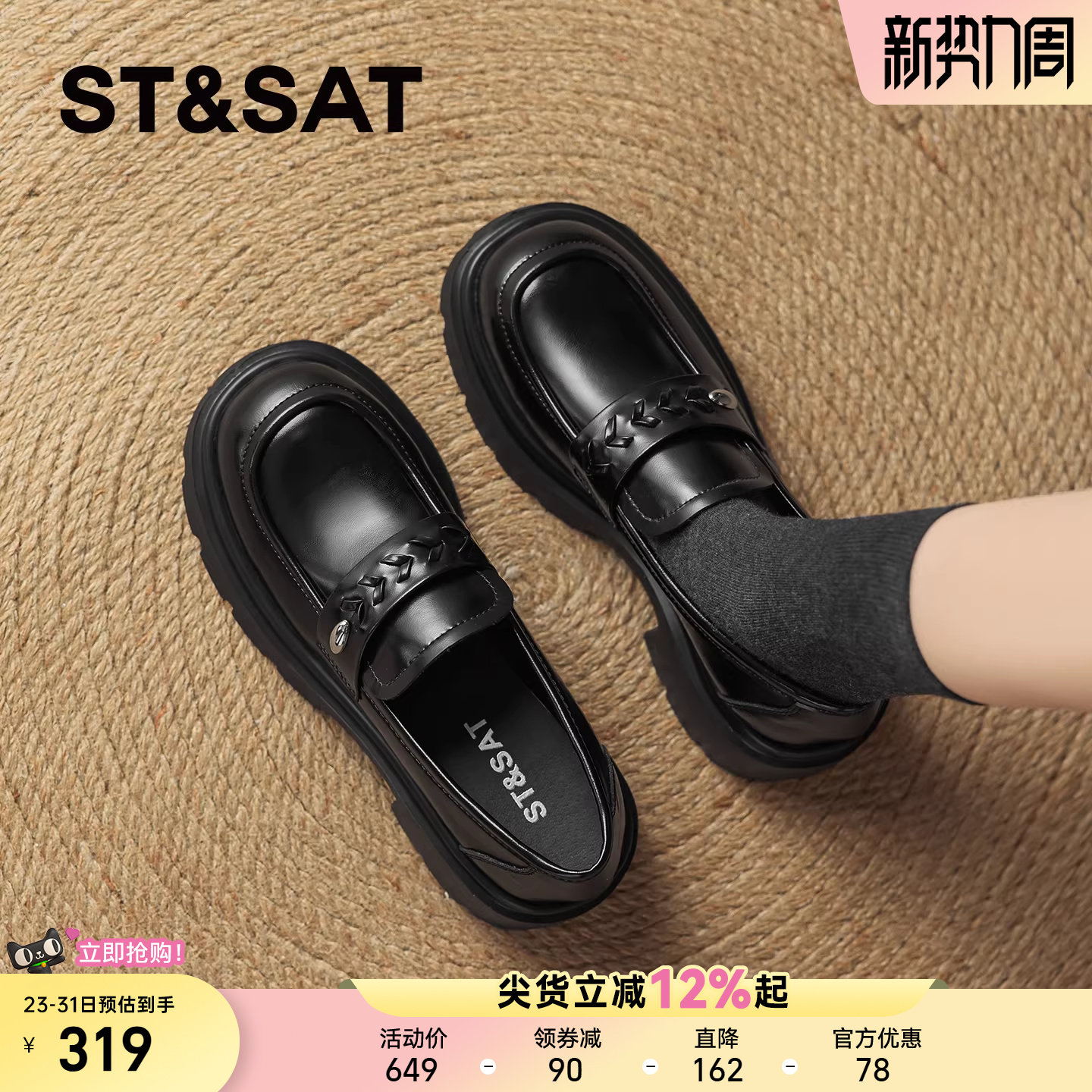 星期六厚底乐福鞋女2026春季新款英伦风小个子增高配裙子小皮鞋子