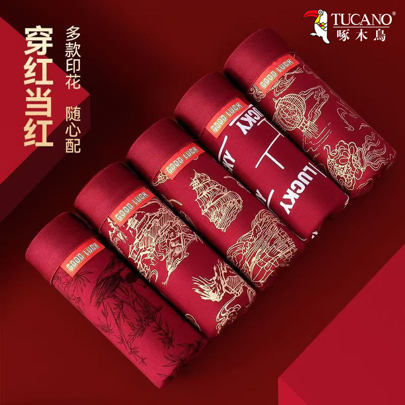 啄木鸟男士内裤男本命年喜庆平角透气国风四角短裤新款-CB抗菌