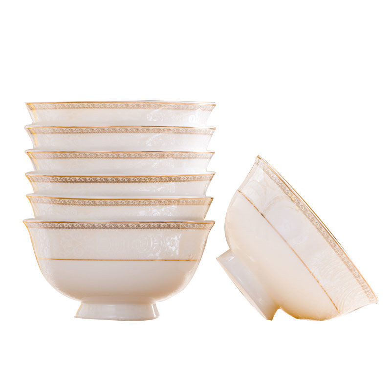 碗家用碗高脚防烫景德镇碗饭碗高级感新款描金饭碗陶瓷餐具吃饭碗