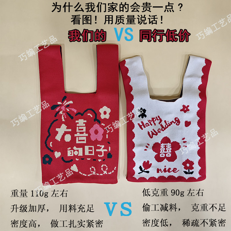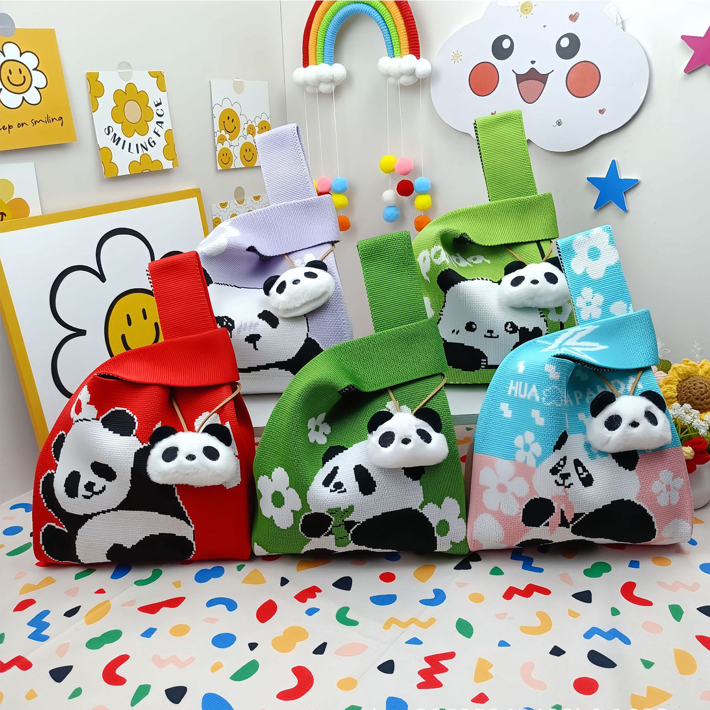 熊猫针织手提包生日伴手礼袋编织手拎成都网红爷爷宽窄巷子圣诞