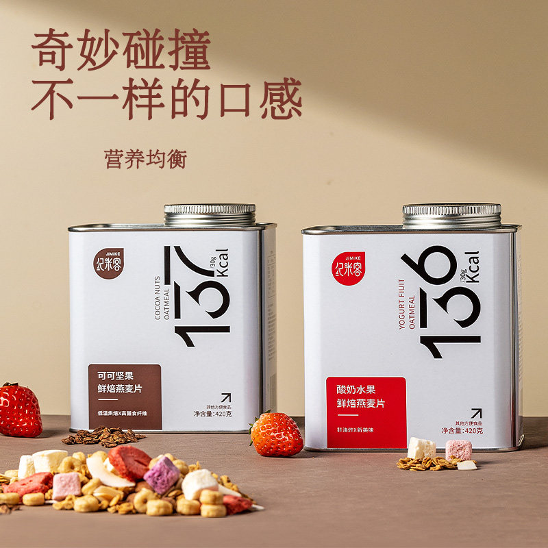 ohmyfood冻干巴西莓天然可可粉燕麦碗即食冲饮代餐燕麦片