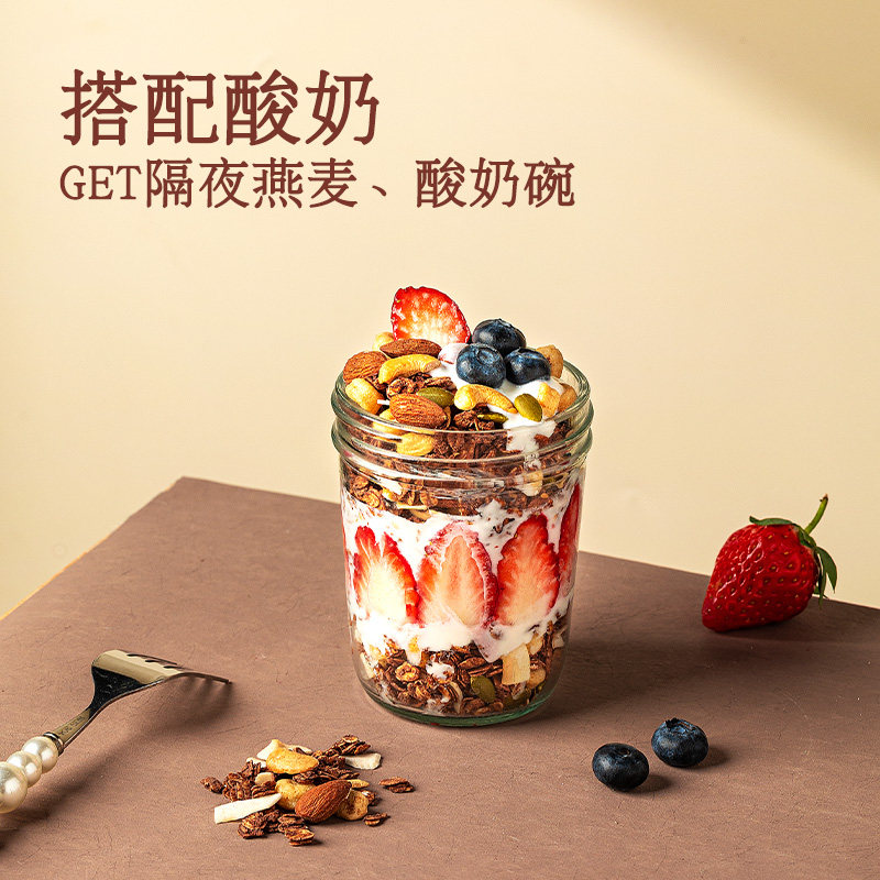 ohmyfood格兰诺拉榛果黑巧克力可可烘焙燕麦片坚果酸奶碗代餐即食