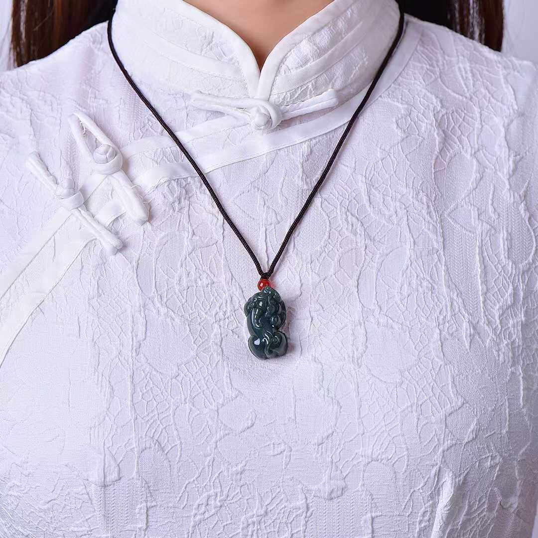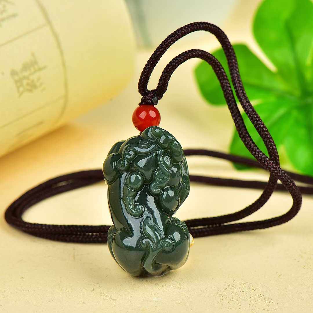 正品新疆和田玉貔貅吊坠青玉情侣招财貔貅玉石项链挂件玉佩可复检