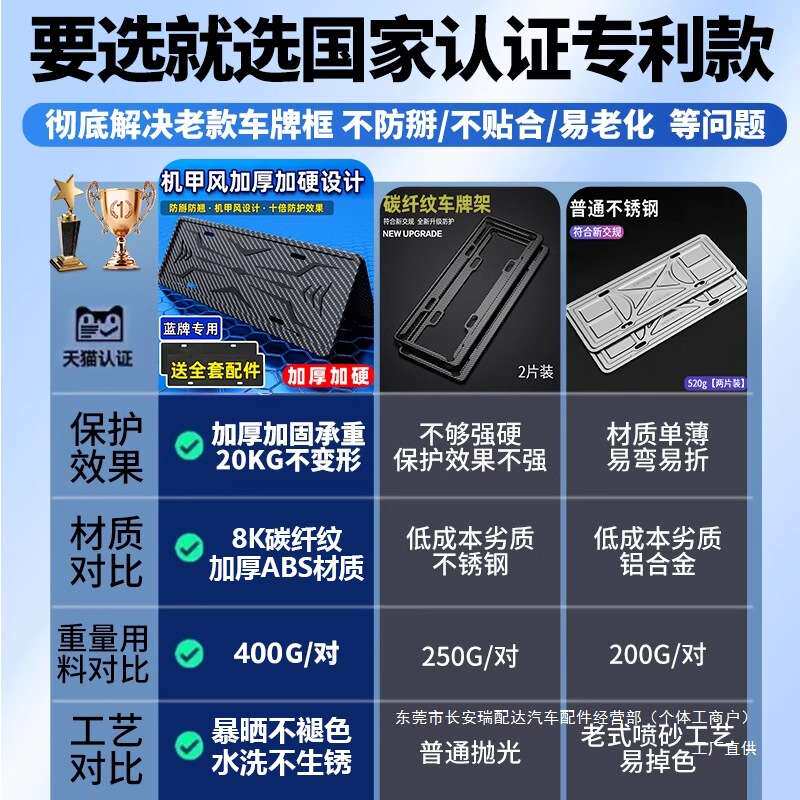 加厚车牌边框新能源绿牌牌照框碳纤维汽车车牌架保护框牌照架瑞配