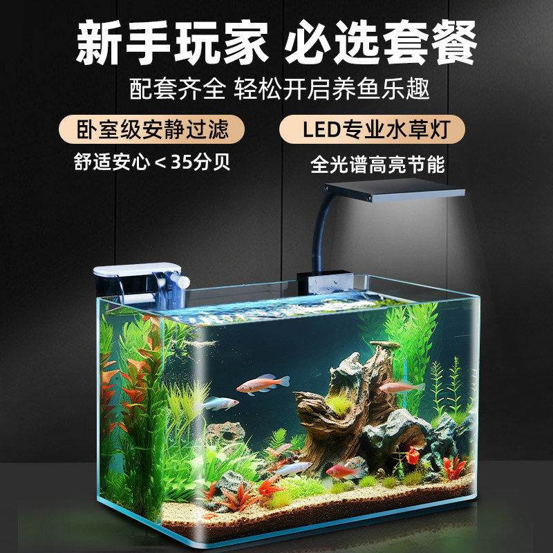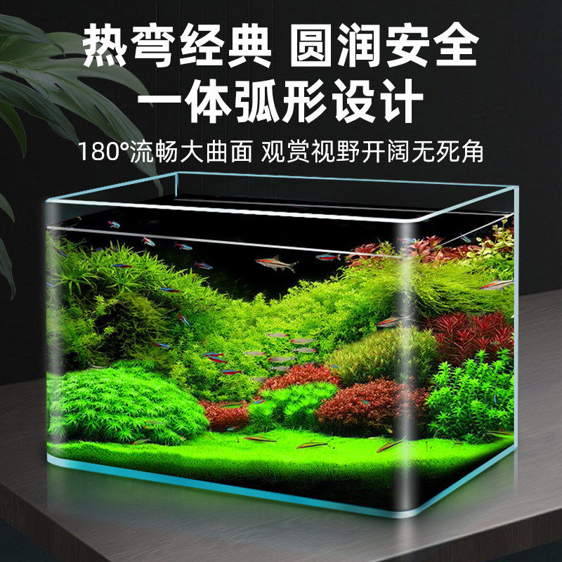 热弯玻璃鱼缸新款小生态缸斗鱼金鱼缸桌面客厅透明家用过滤器水缸