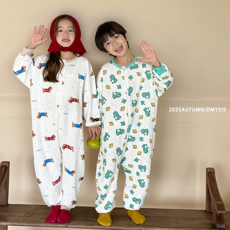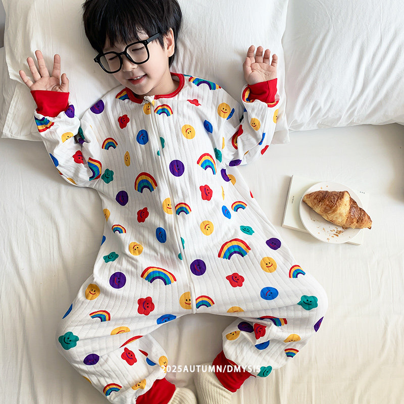 儿童睡袋秋冬加厚纱布中大童恒温睡袍防踢被神器四季通用连体睡衣