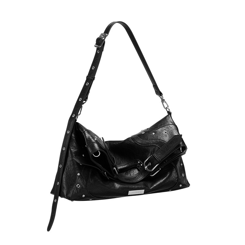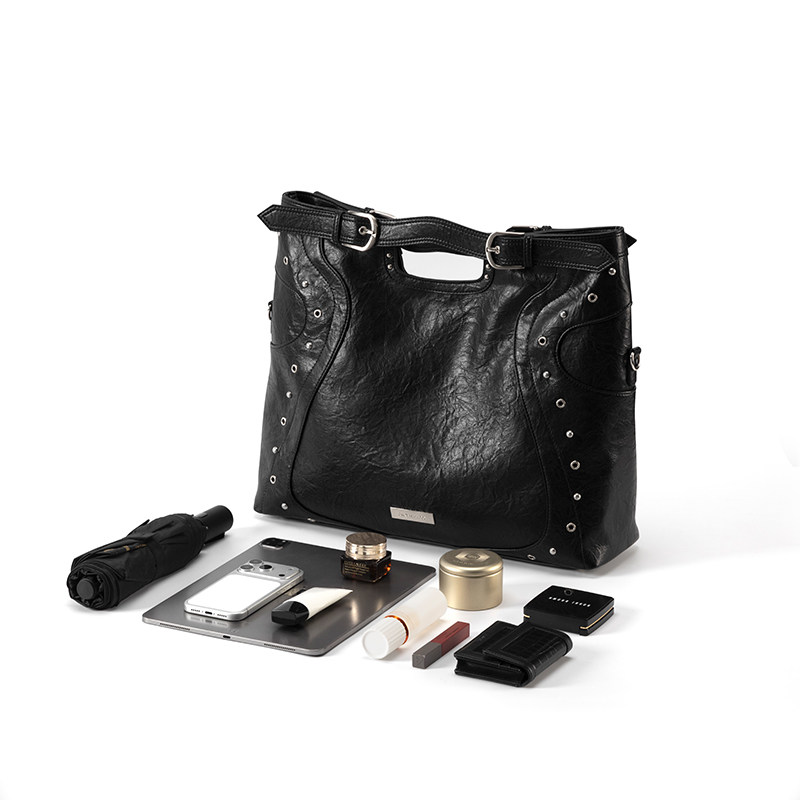 Acynmixx中性风朋克铆钉机车包大容量可翻折托特包小众设计斜挎包