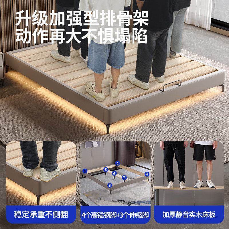全实木无床头床架榫卯静音悬浮床小户型齐边排骨架床架可定制尺寸