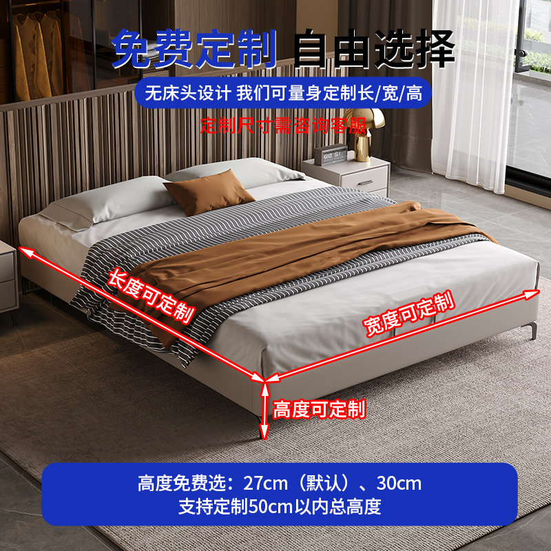 纯实木薄床头齐边床现代简约卧室小户型静音双人床支持定制尺寸