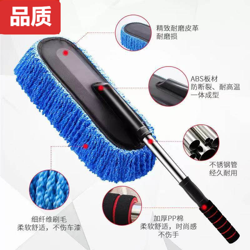 徕本弯杆洗车拖把不伤车漆软毛伸缩车用汽车刷子专用除尘掸子神器