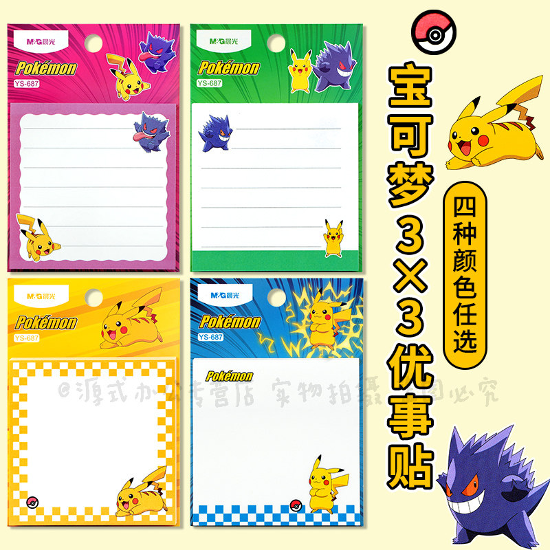 晨光宝可梦3X3优事贴YS-687自粘式便条纸60张学生用可撕便签纸可爱皮卡丘粘性强留言分类n次贴手账贴 优事贴