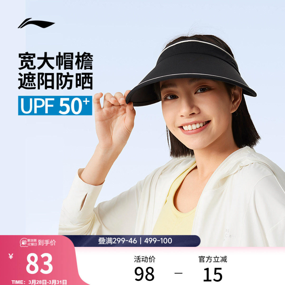 李宁太阳帽男女官方夏季户外运动跑步空顶帽大帽檐冰丝遮阳防晒帽