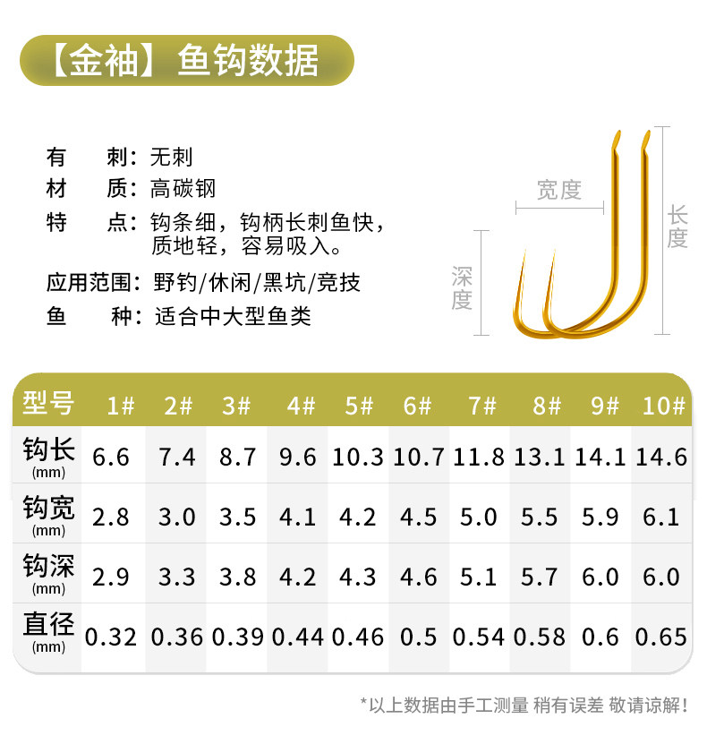 金袖鱼钩散装有无倒刺正品细条平打粉袖溪流钓鱼钩鲫鱼白条鱼钓钩