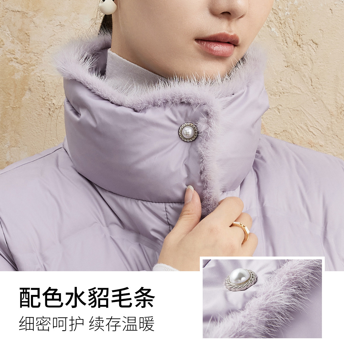 菲妮迪品牌90白鹅绒羽绒服2025冬新款简约水貂毛领紫色保暖外套女
