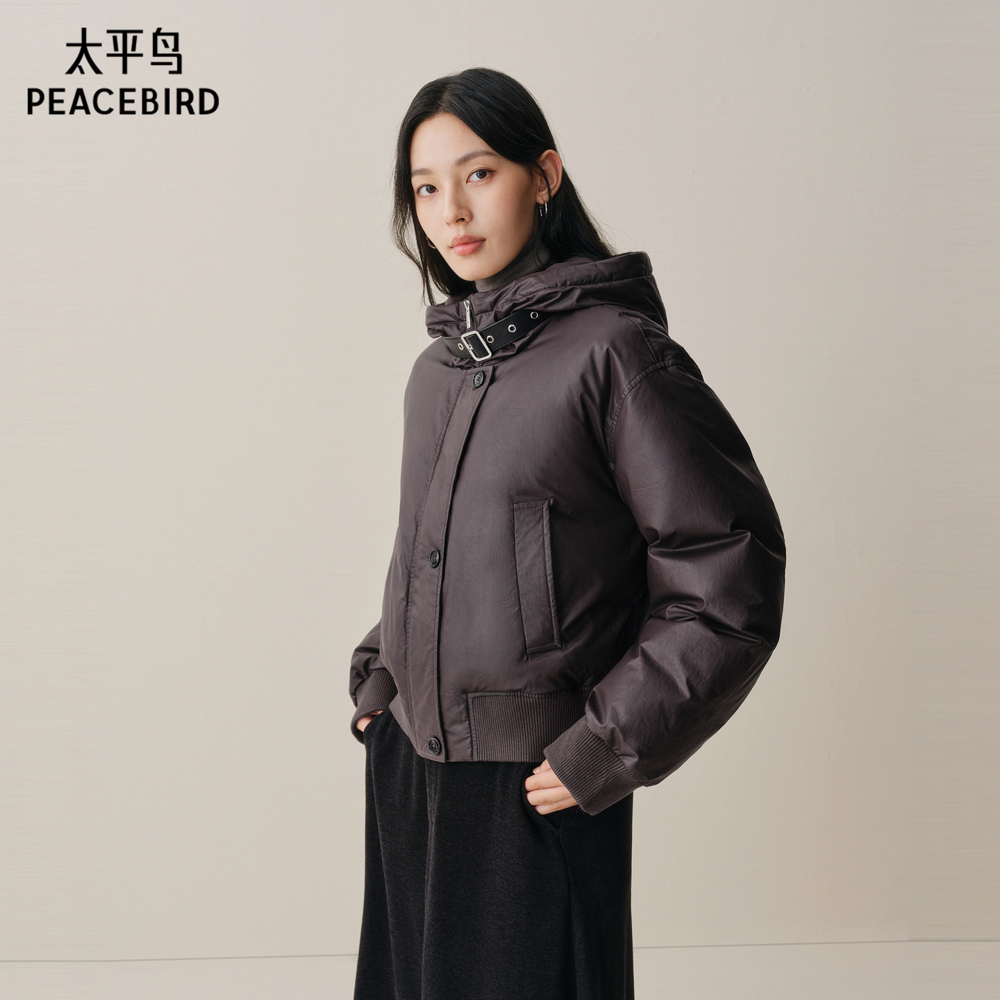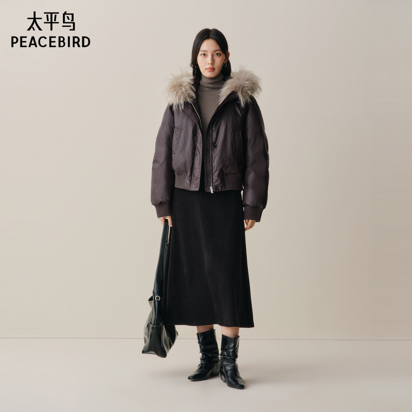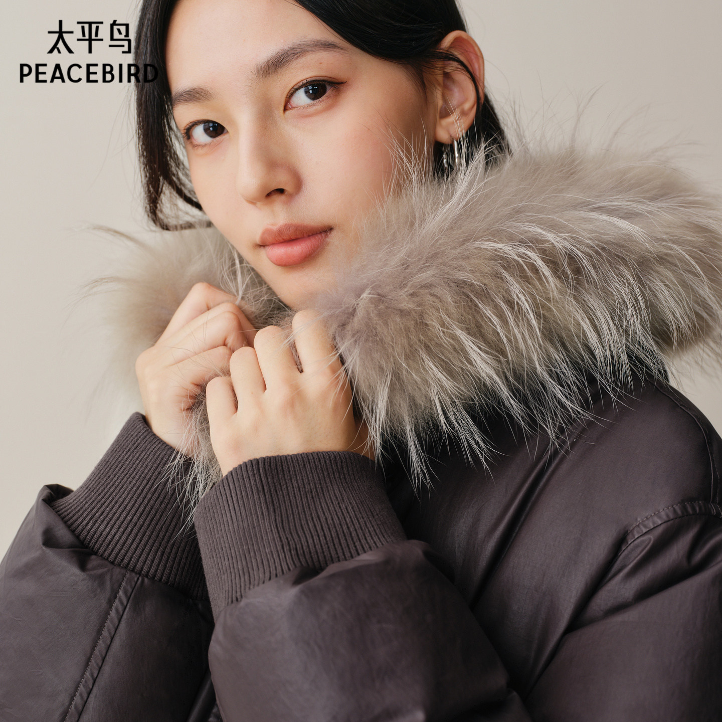 【商场同款】太平鸟可拆卸貉子毛领羽绒服女白鸭绒外套A1ACF4411
