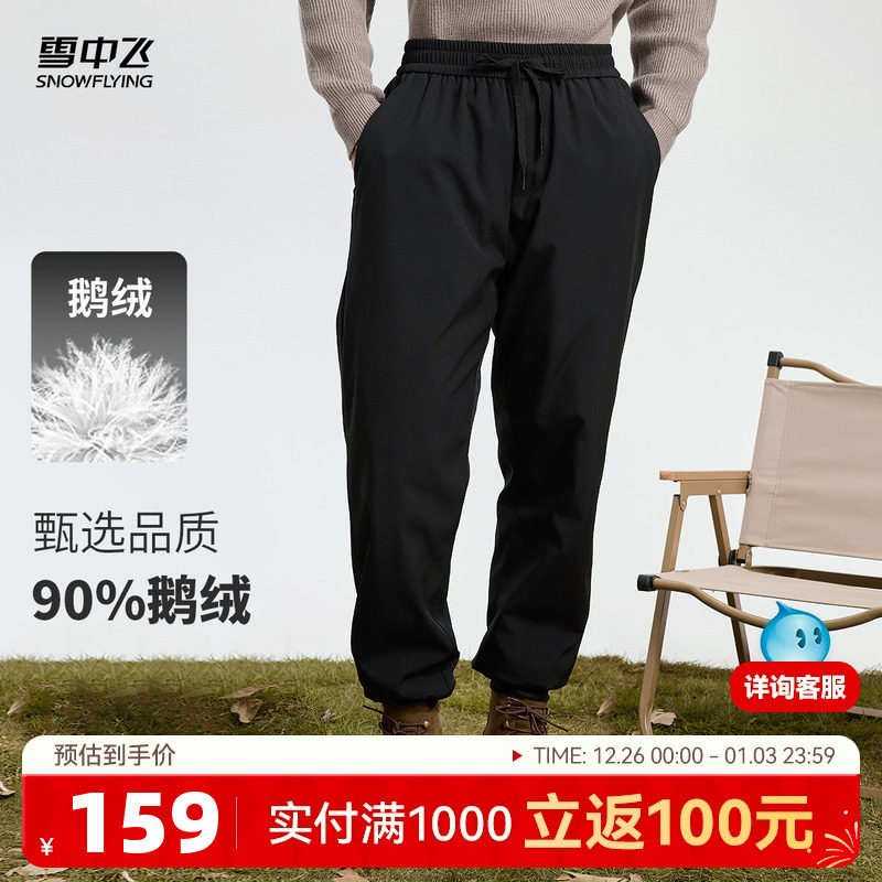 雪中飞2025冬新款男士鹅绒束脚纯色系带羽绒裤保暖休闲运动时尚