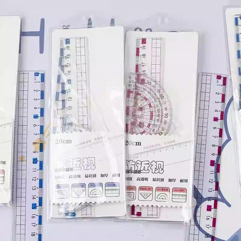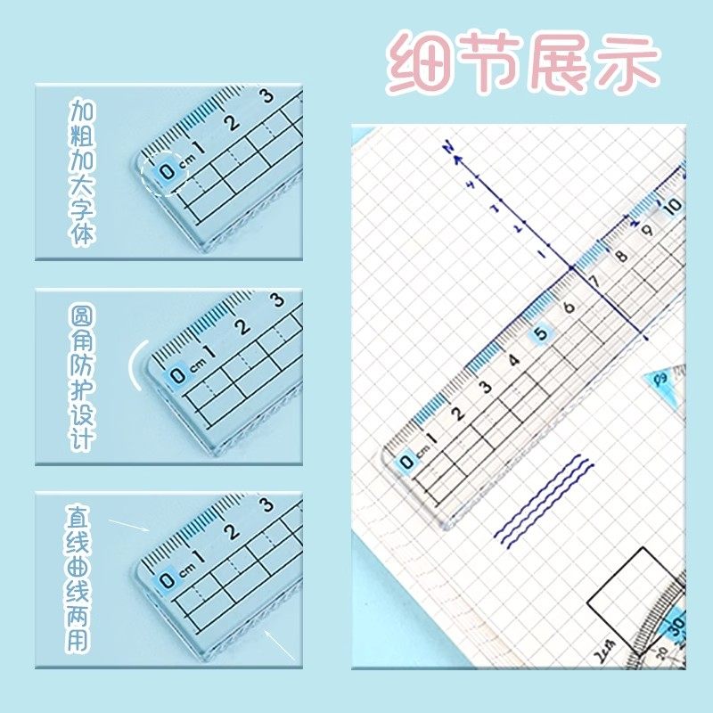 防近视尺子套装小学生专用一年级套尺三角尺波浪直尺多功能量角器