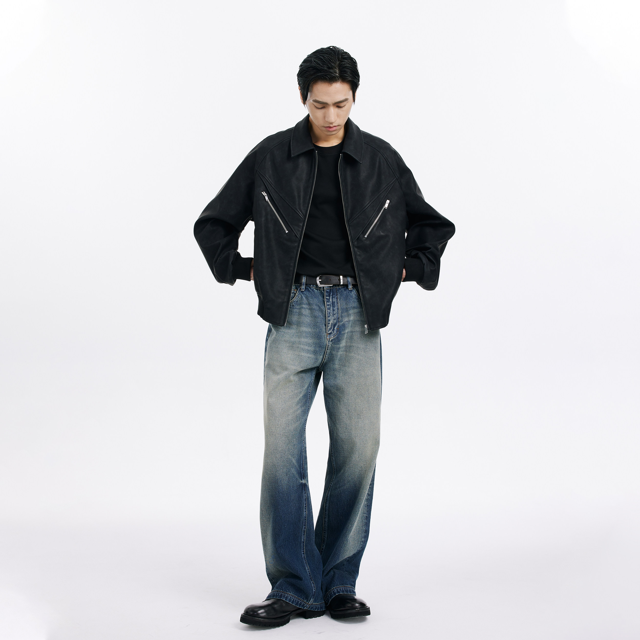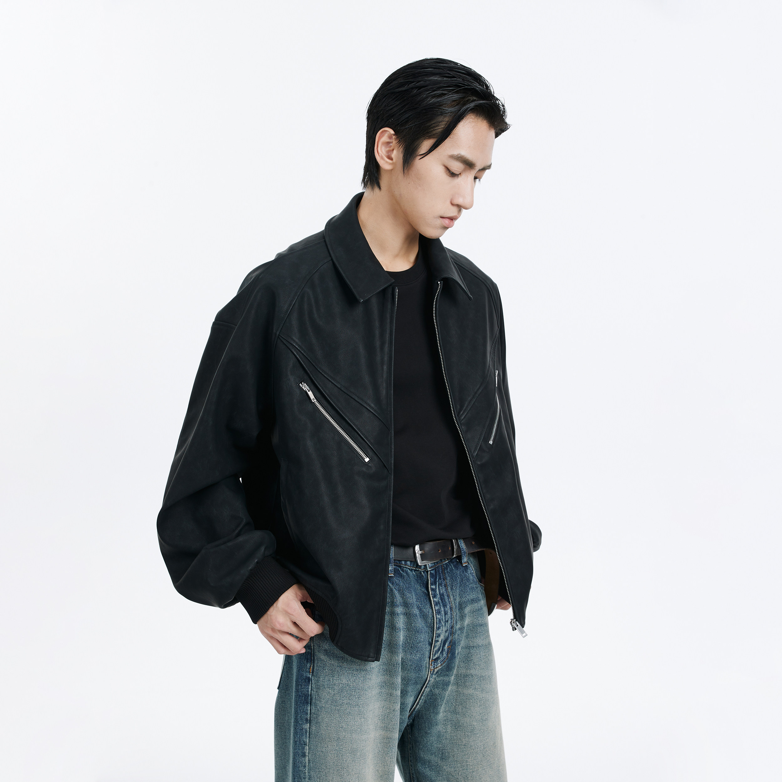 BODYDREAM复古做旧皮衣外套男街头廓形休闲通勤翻领夹克/挺阔抗皱