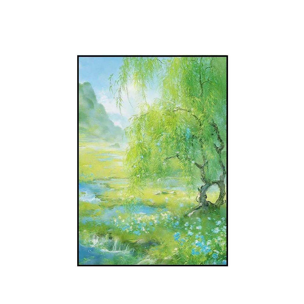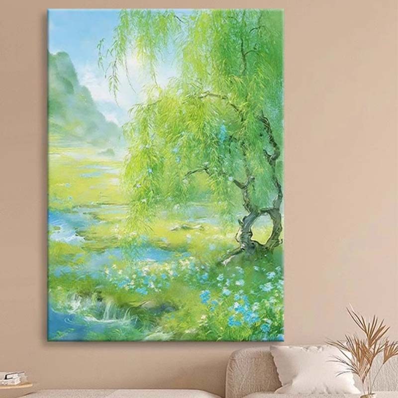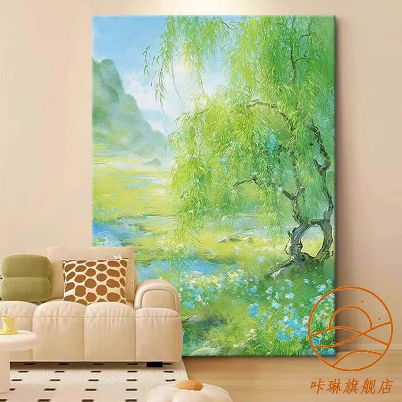 奶油风莫奈绿色风景山水柳树入户玄关过道挂画客厅卧室餐厅装饰画