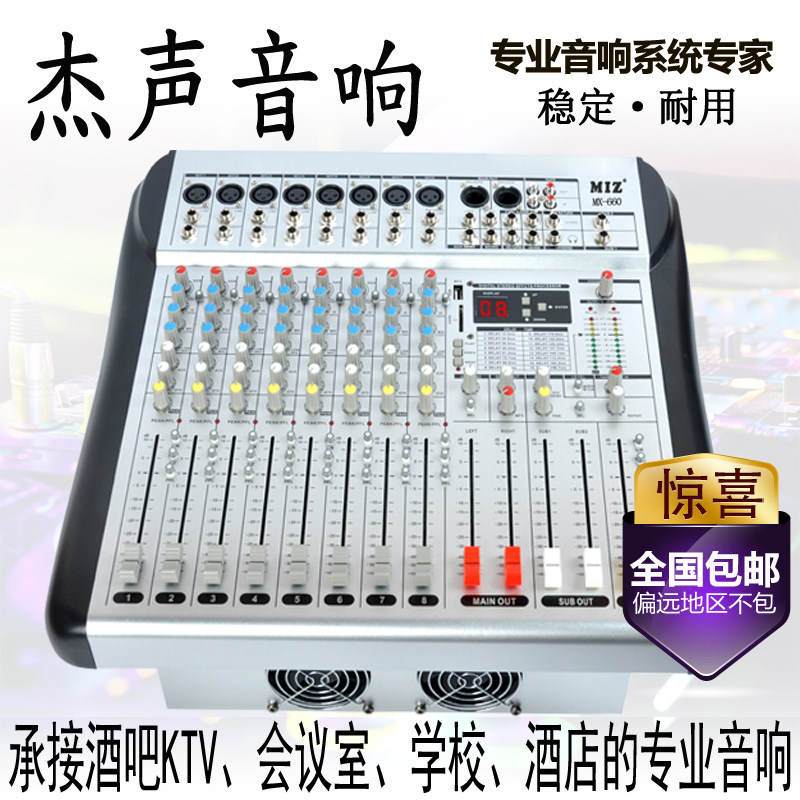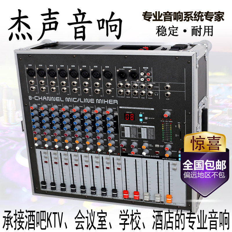 MIZ8路调音台带功放一体机带航空箱大功率舞台演出会议婚庆调音台