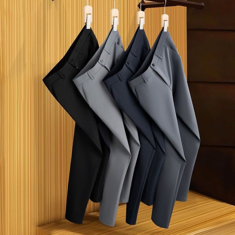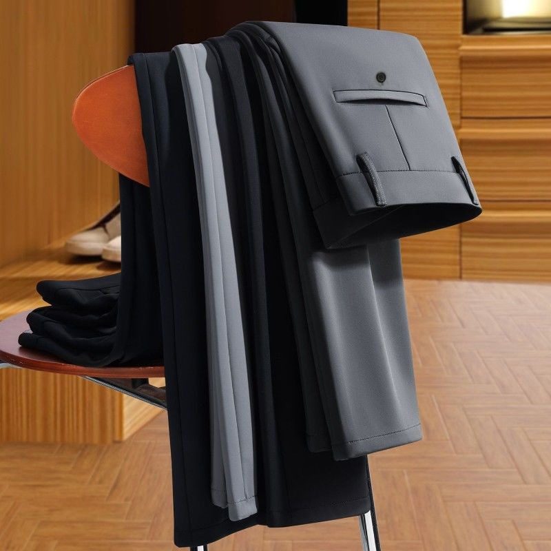 秋季厚款男士西裤商务职业免烫抗皱西装长裤中年宽松直筒休闲裤子