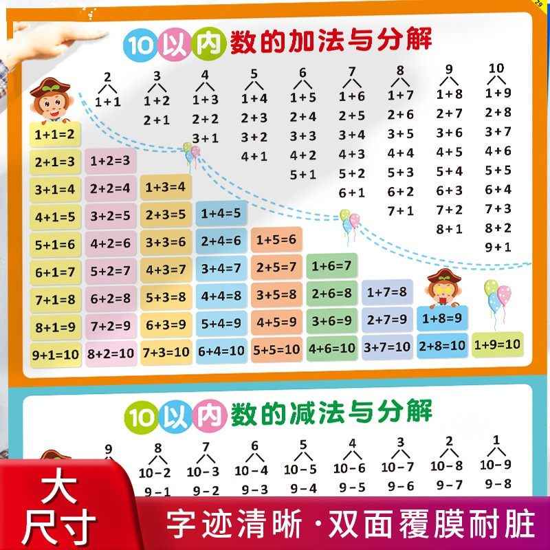 幼儿童20以内加减法口诀表一年级加法数学拼音挂图10分解组合墙贴