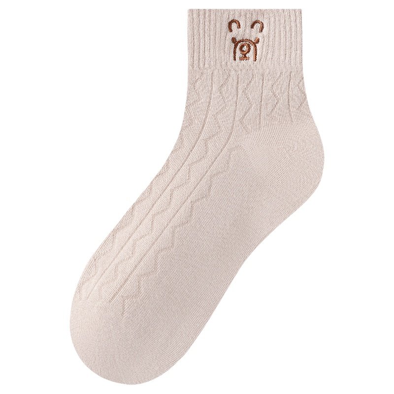 诸暨袜子女士秋冬季短筒袜纯棉可爱月子袜冬天短袜中筒精梳棉白色