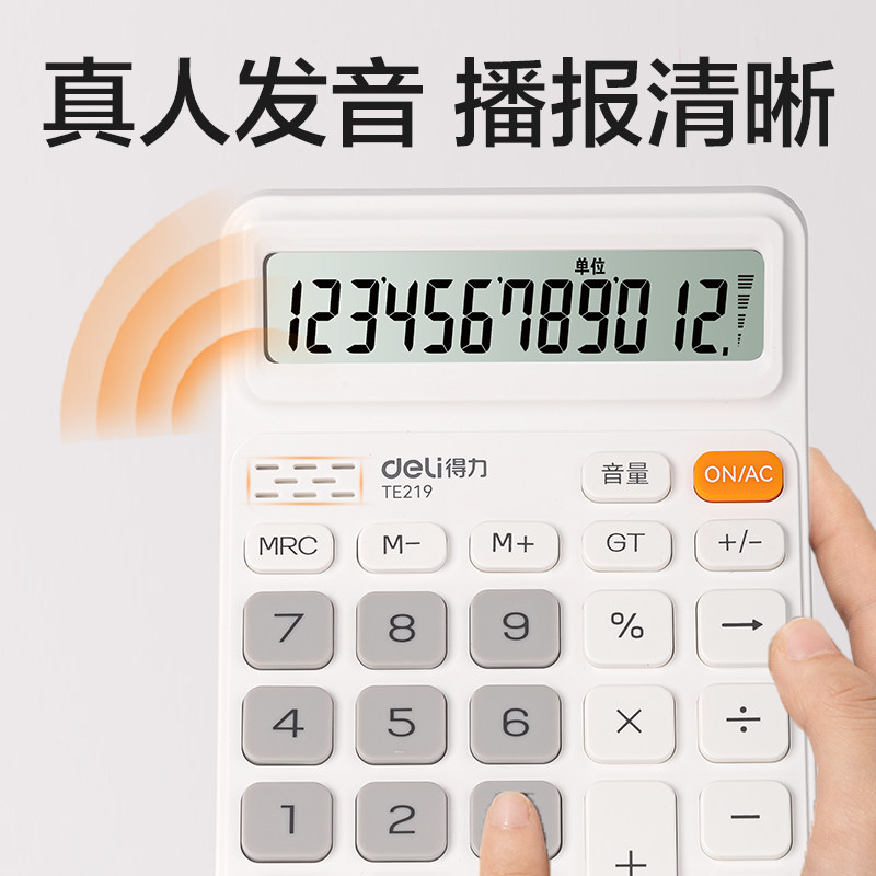 得力计算器语音真人发音大屏幕计算器办公室用带声音商用财务会计用音乐小号便携商务办公用品专用