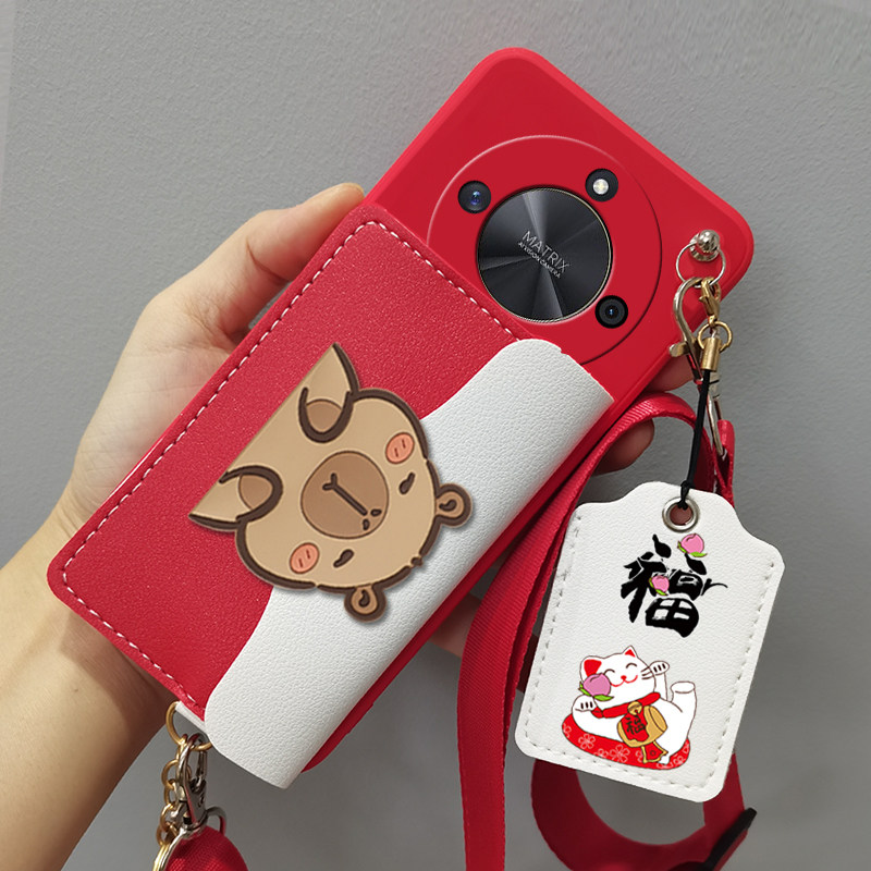 适用honor荣耀x70手机壳零钱卡包MTN-AN00套零钱包斜挎honorx70新年网红卡包套门禁卡包袋新年款潮
