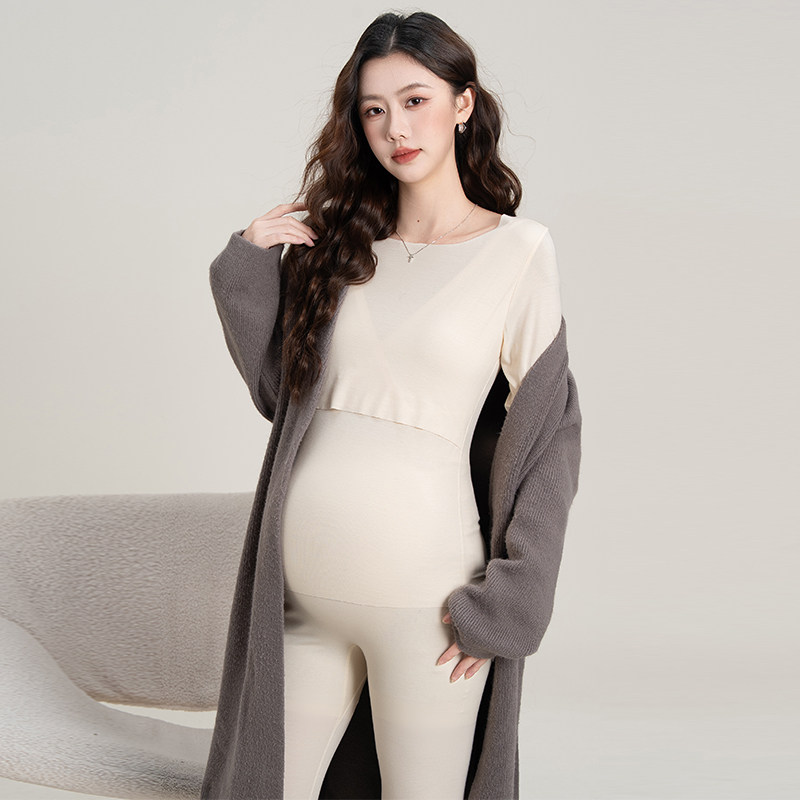 婧麒孕妇保暖内衣套装纯棉秋冬季款怀孕期产后哺打底衣乳秋衣秋裤
