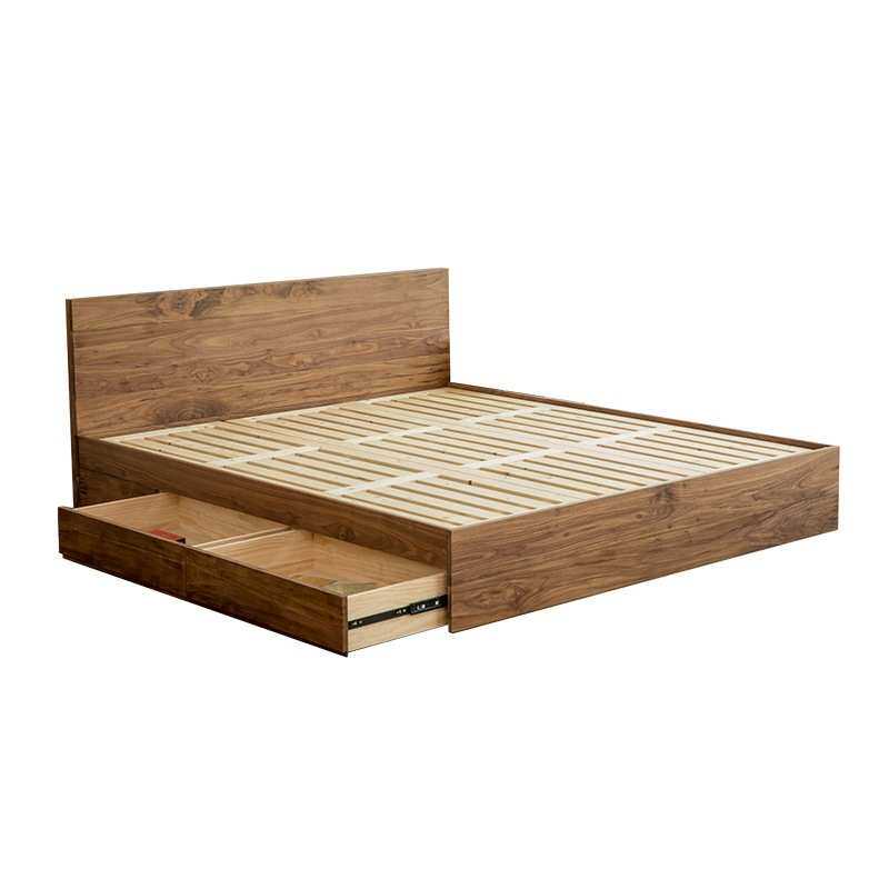 北欧实木床樱桃木1.8米双人床现代简约15m黑胡桃木日式橡木储物床