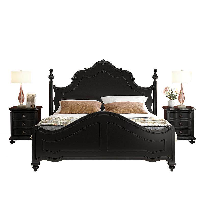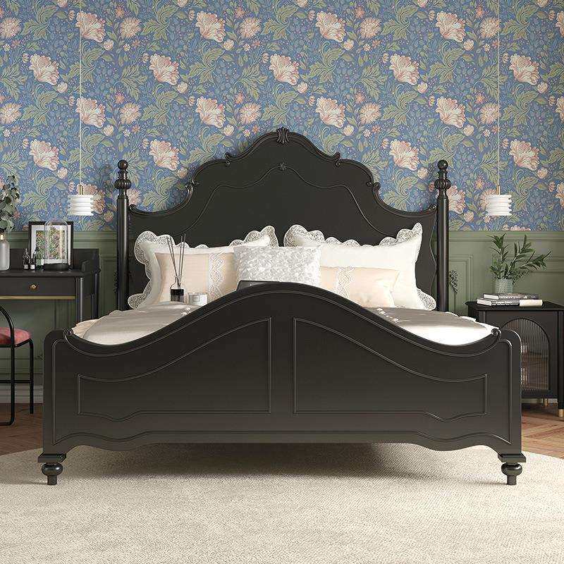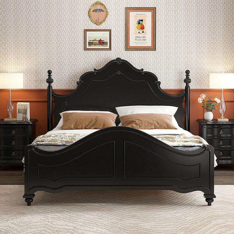 法式复古风实木床黑色双人床1.8米大床1.5m主卧室美式婚床公主床