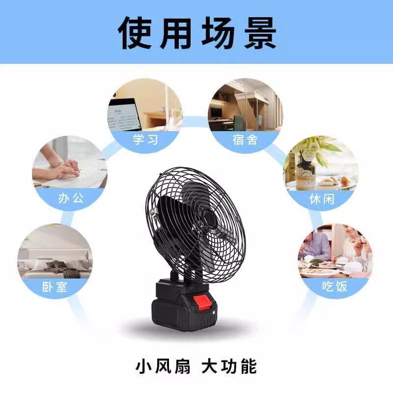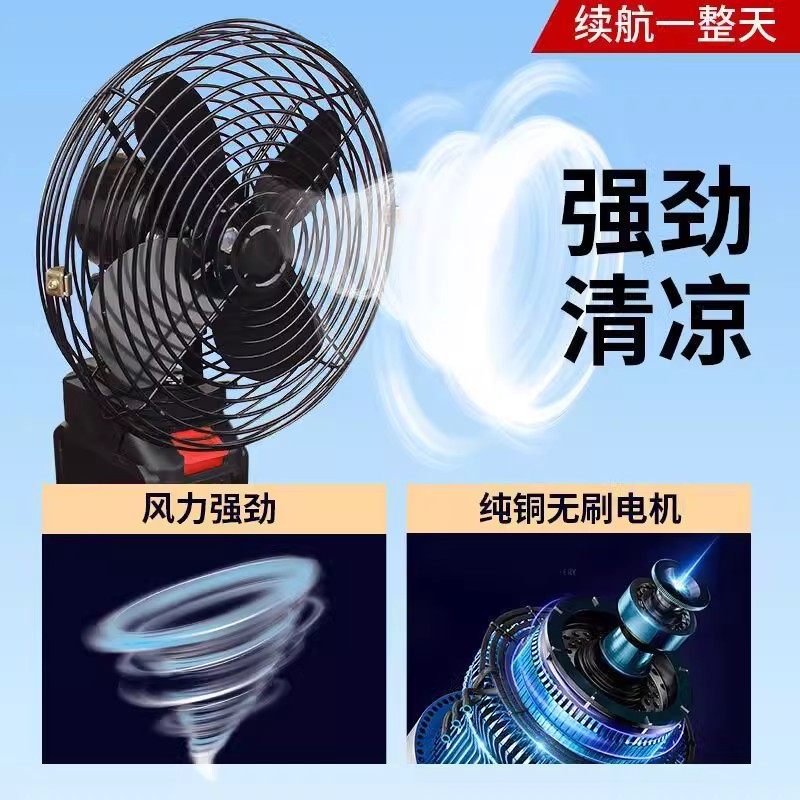 大艺款锂电池通用电风扇Usb风扇钓鱼户外大风力充电式8寸无刷插电
