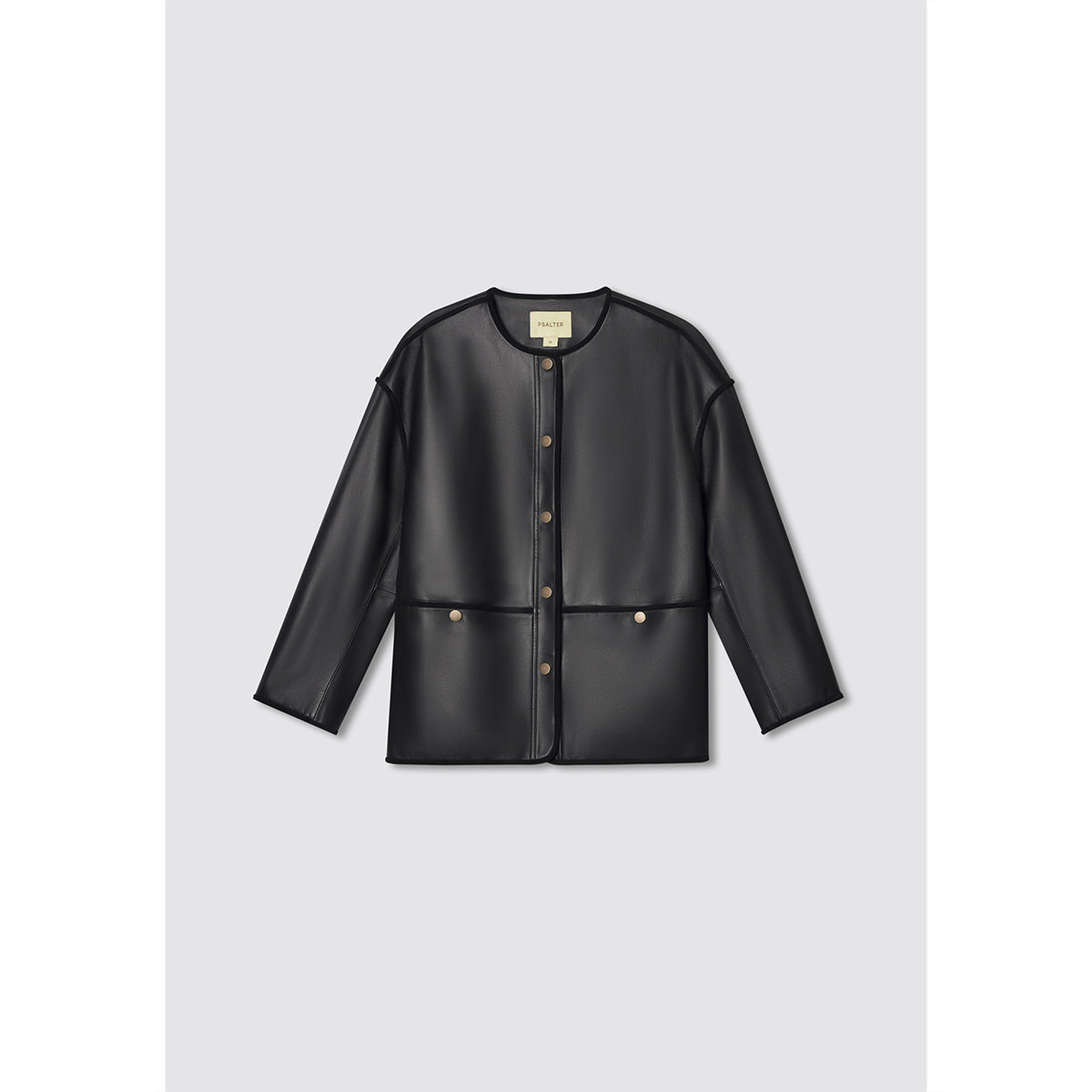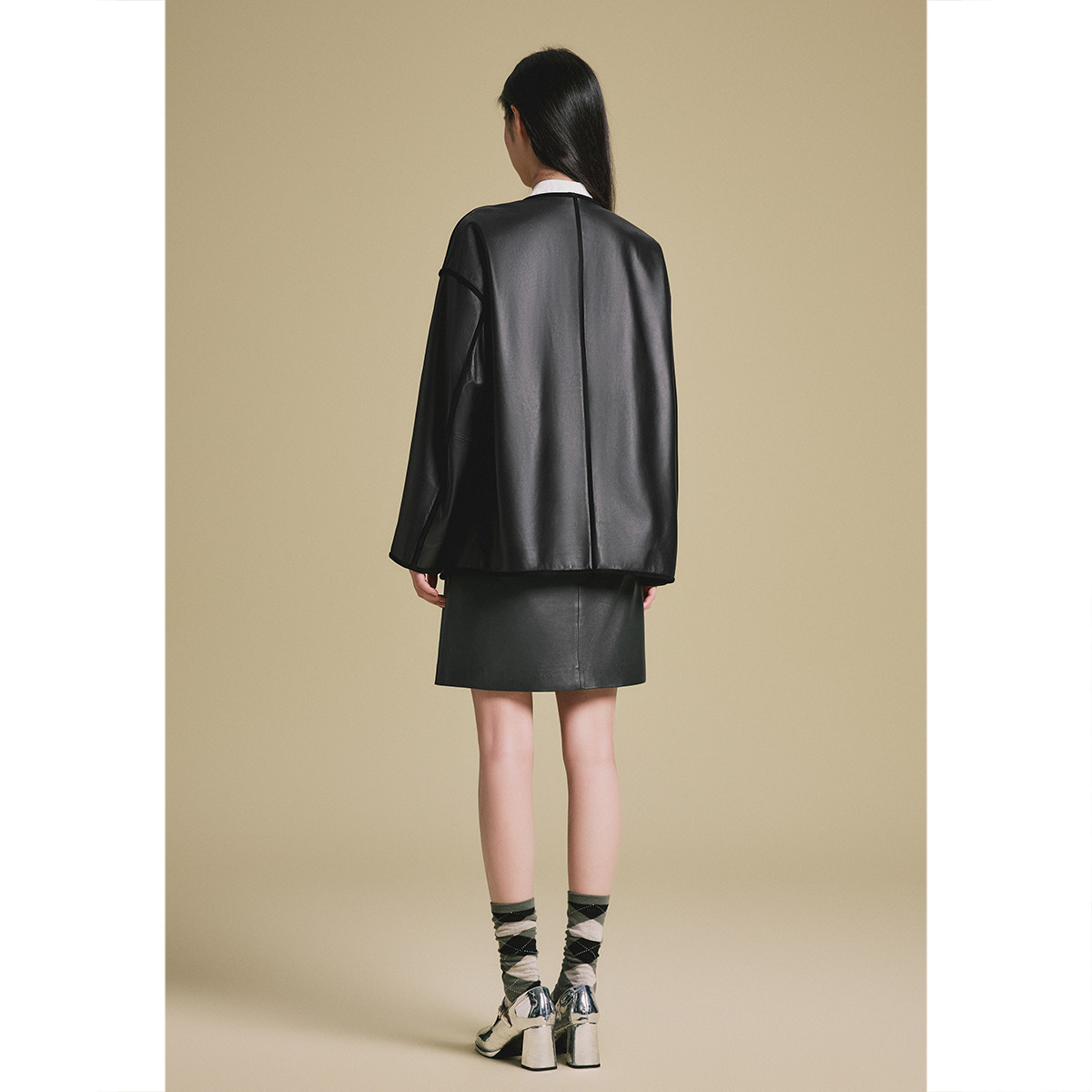 诗篇专选绵羊皮一手长廓形版落肩设计时尚圆领皮衣外套2025春款