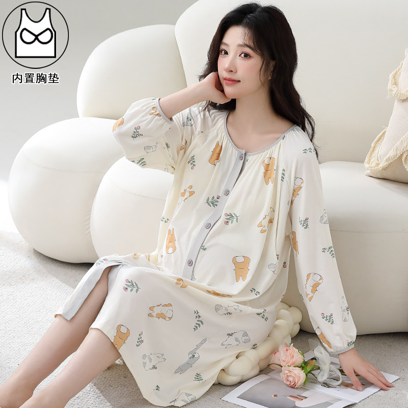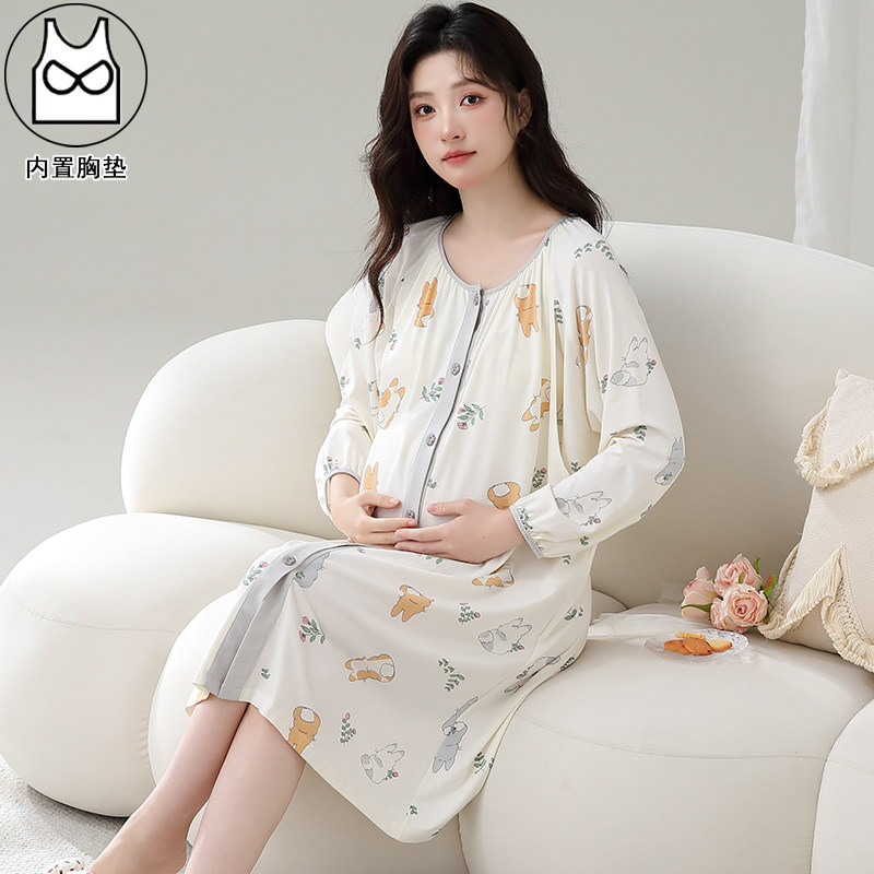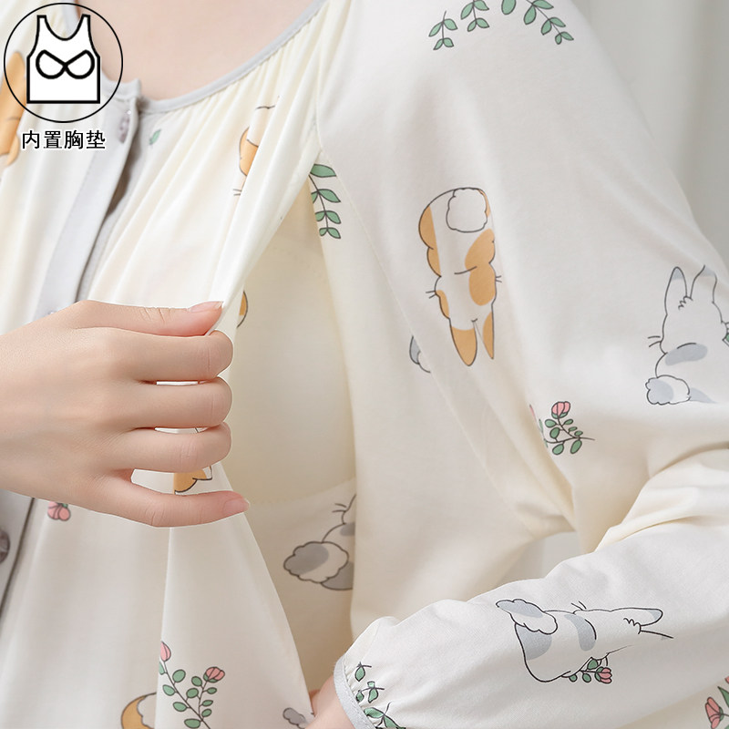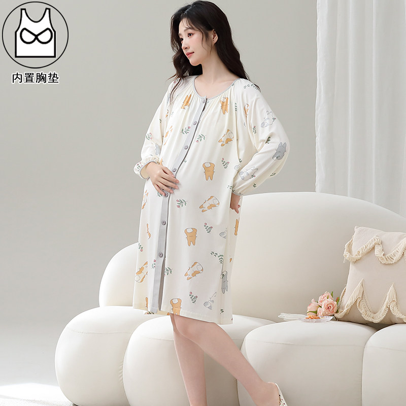 春秋纯棉带胸垫月子服医院待产裙产妇孕妇睡裙喂奶哺乳衣产前产后