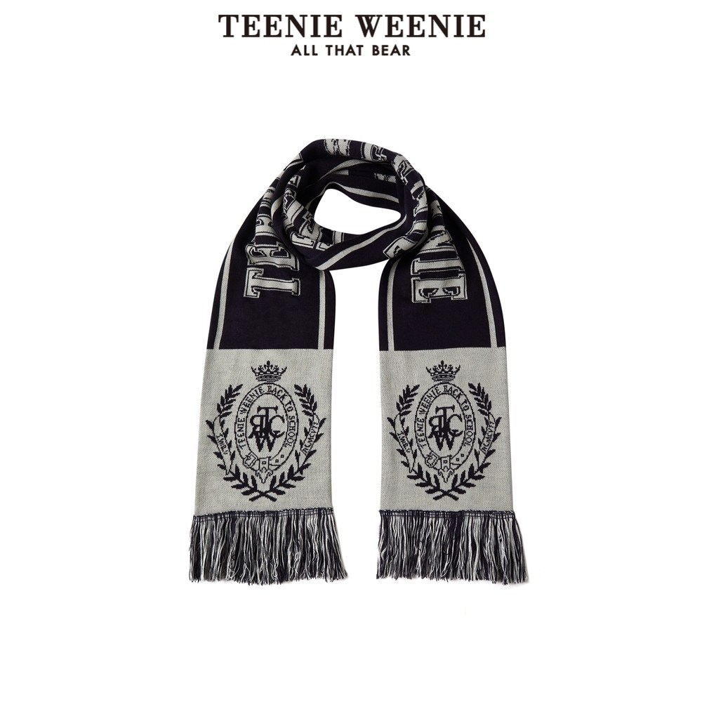 TeenieWeenie小熊奥莱女装时髦冬季学院风字母围巾撞色带流苏设计