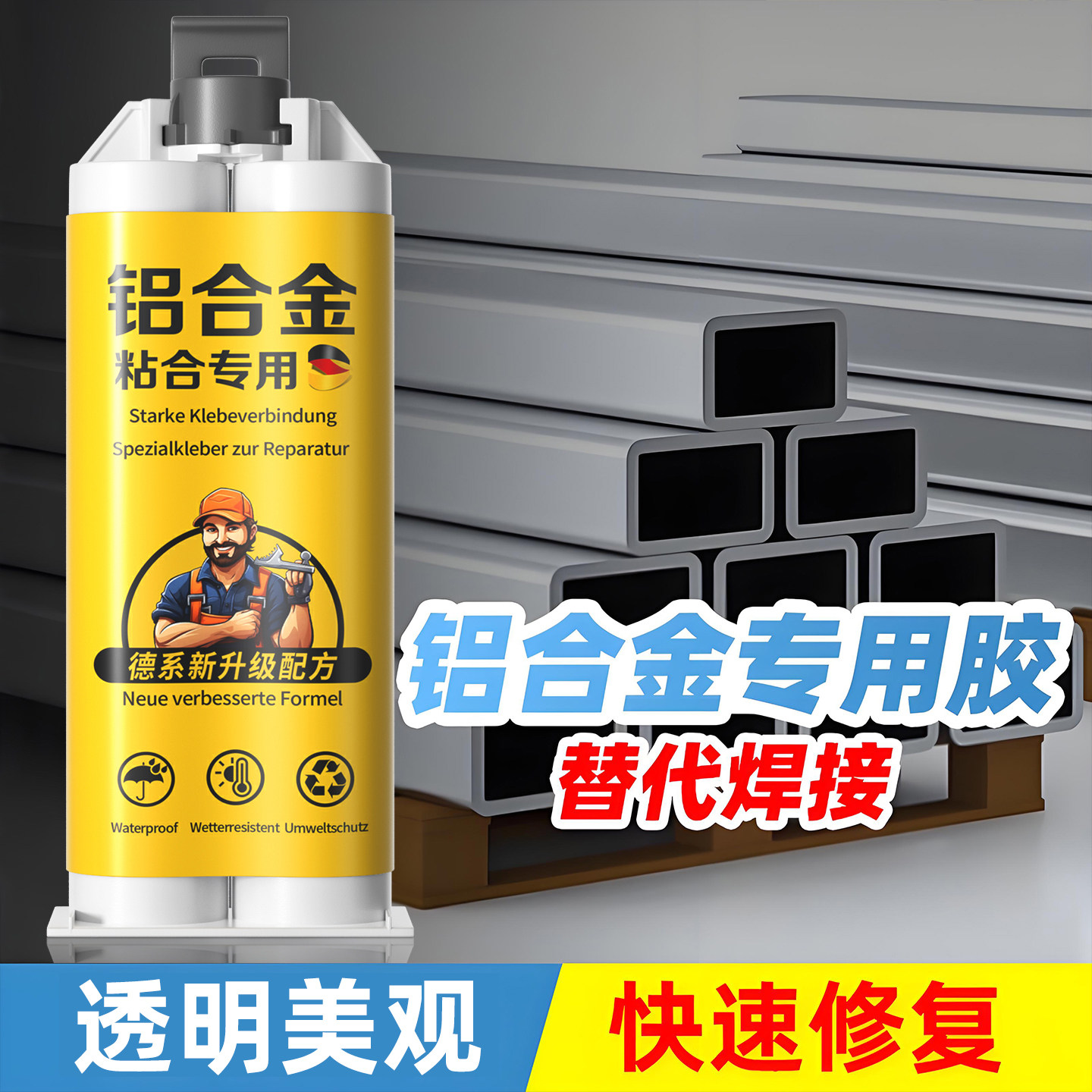 粘铝合金的专用胶超强力耐高温金属粘合剂门窗拉手代替焊接电焊胶踢脚线粘合剂收边条压条胶高强度快干ab胶水