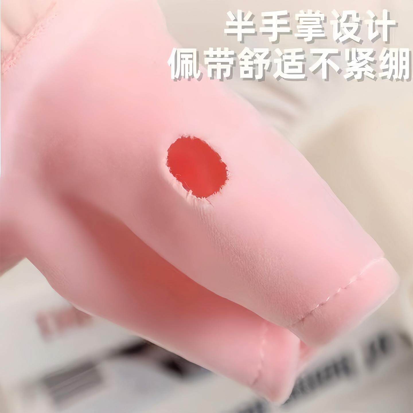 mikko联名可爱卡通猫咪毛绒手套女冬季翻盖半指触屏加厚骑行保暖