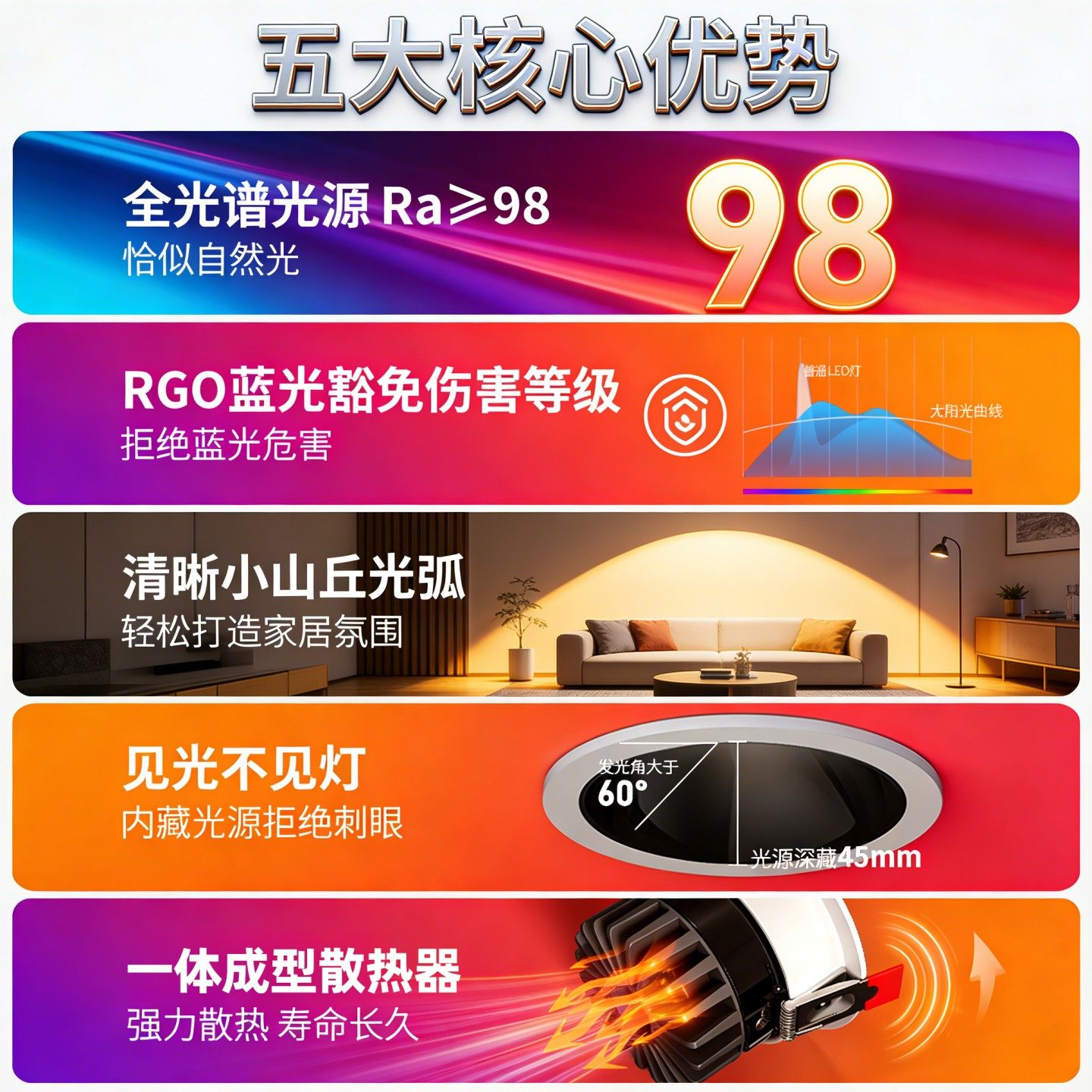 隐形弧面无边框护眼射灯小山丘嵌入式客厅筒射灯无主灯防眩洗墙灯