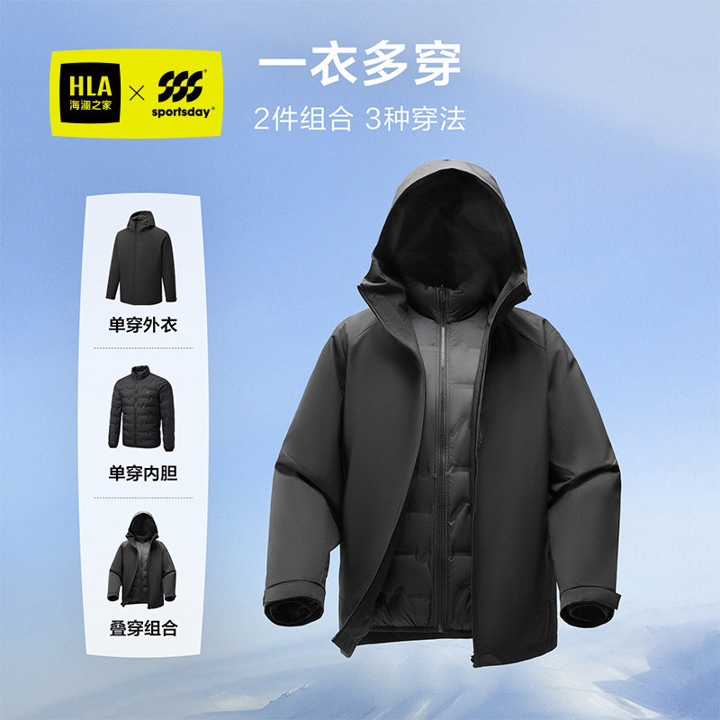 海澜之家运动男士三合一羽绒服2025新款冬季白鸭绒连帽保暖外套男