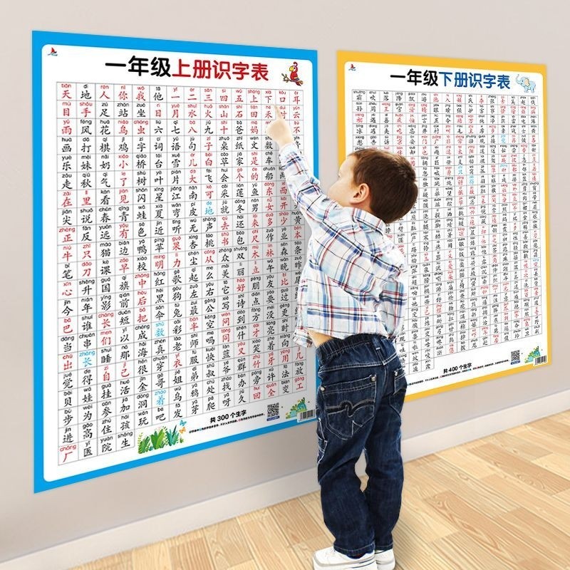 一年级上册下册语文生字识字认字表识字挂图卡片人教版拼音墙贴识字防水墙贴幼儿拼音古诗墙词贴启蒙早教认知