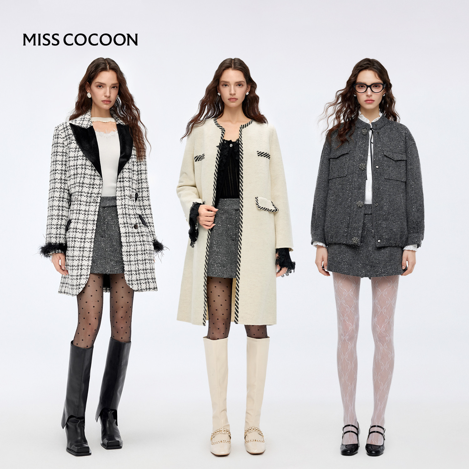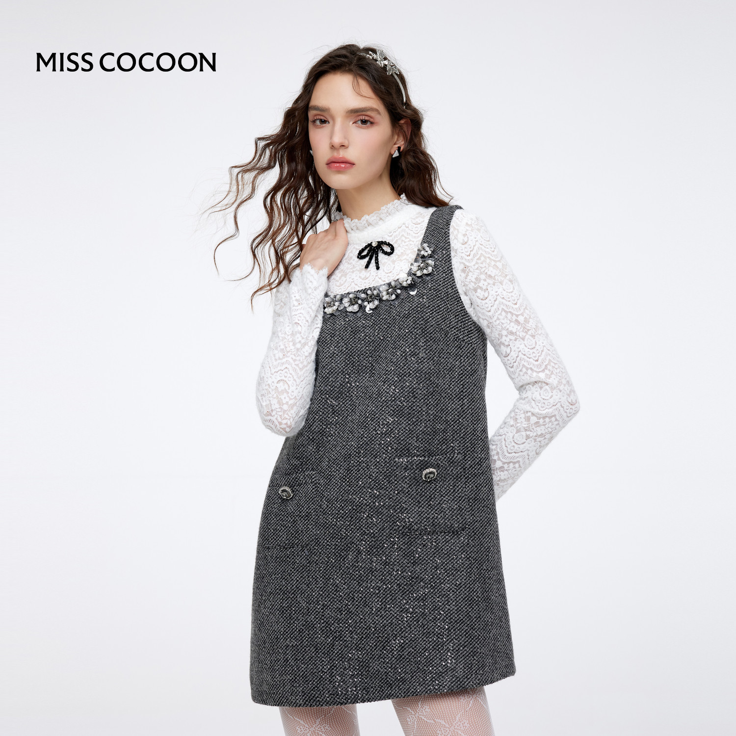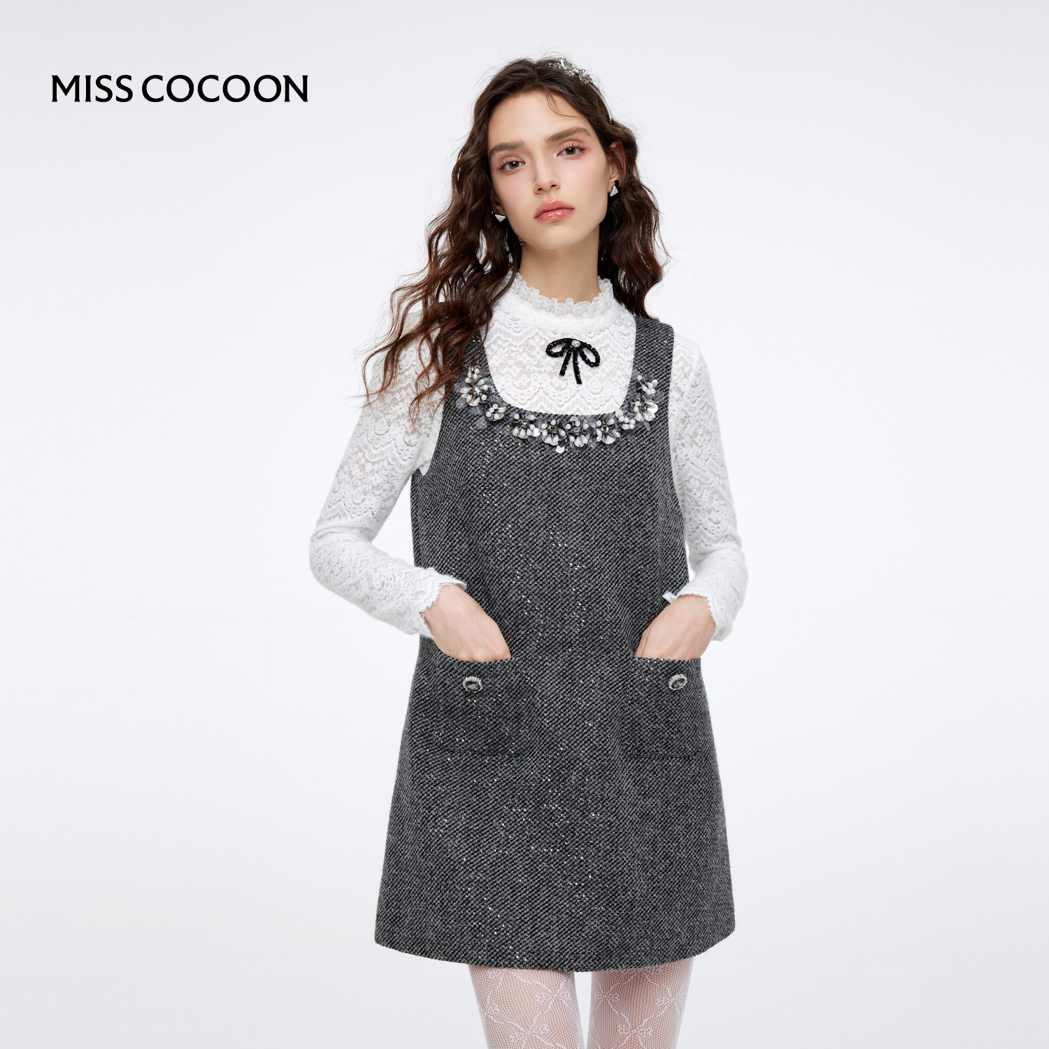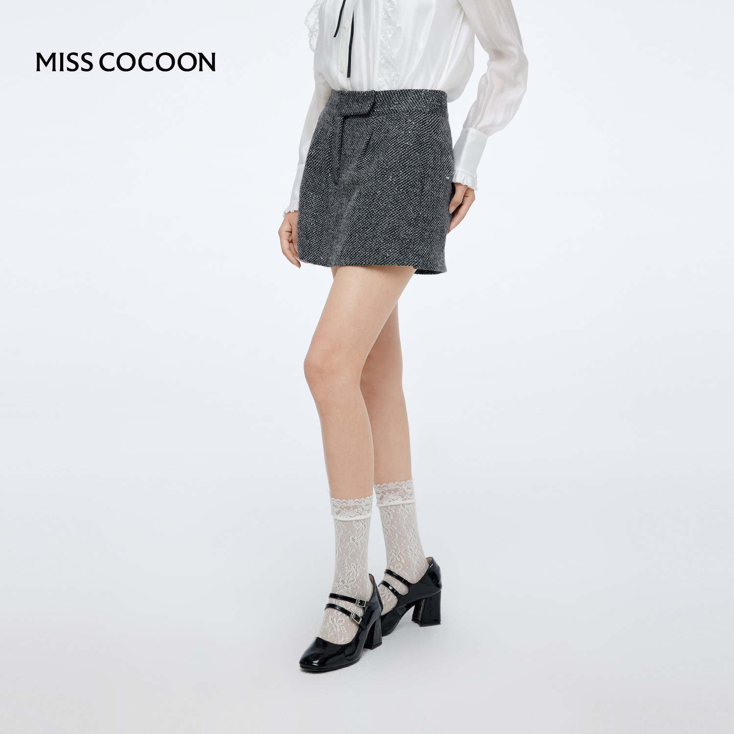 MISSCOCOON可可尼灰色假两件女2025秋冬新款miu系A字绵羊毛短裙裤