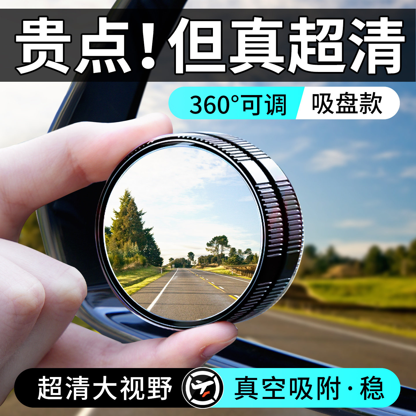 汽车后视镜小圆镜盲区倒车超清辅助反光镜子360度全景广角吸盘式