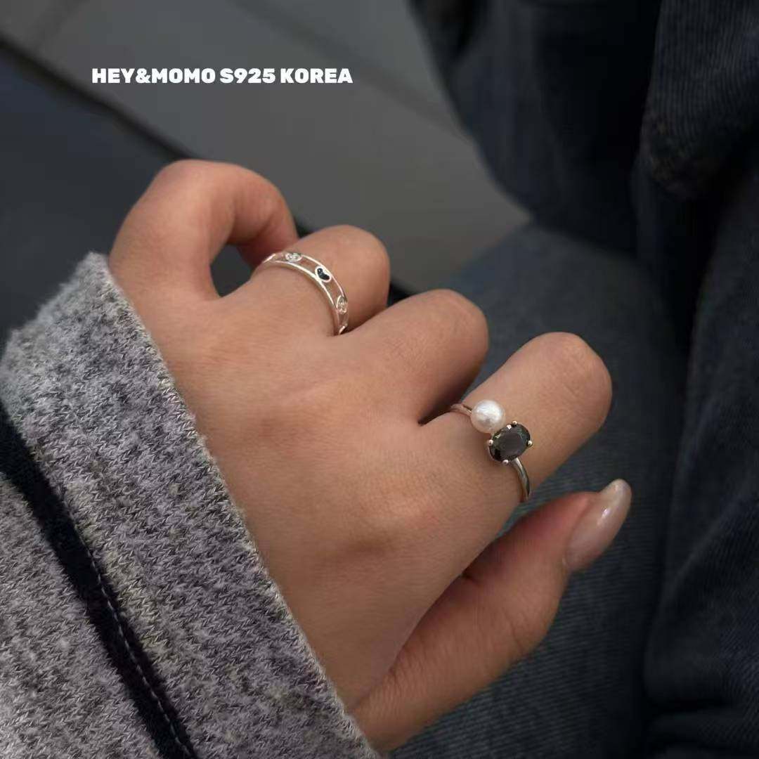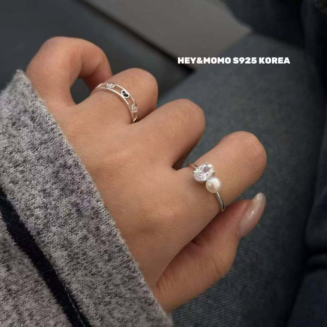 12.15直播韩国momo银饰亮钻珍珠戒指贵气925银
