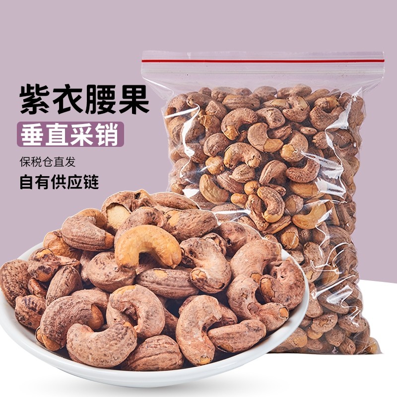 秋淘带皮大腰果仁500g原味盐焗紫皮新货越南特产坚果干果孕妇零食