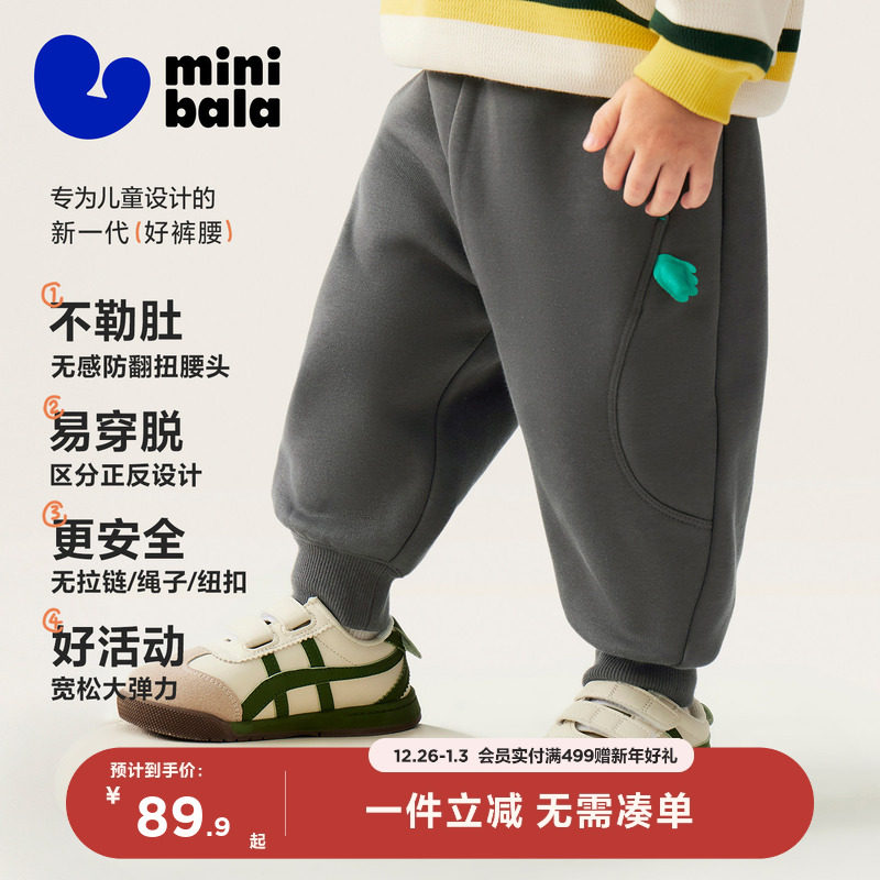 【保暖抑菌】迷你巴拉巴拉男女童裤子2025冬新品发热加绒宝宝长裤