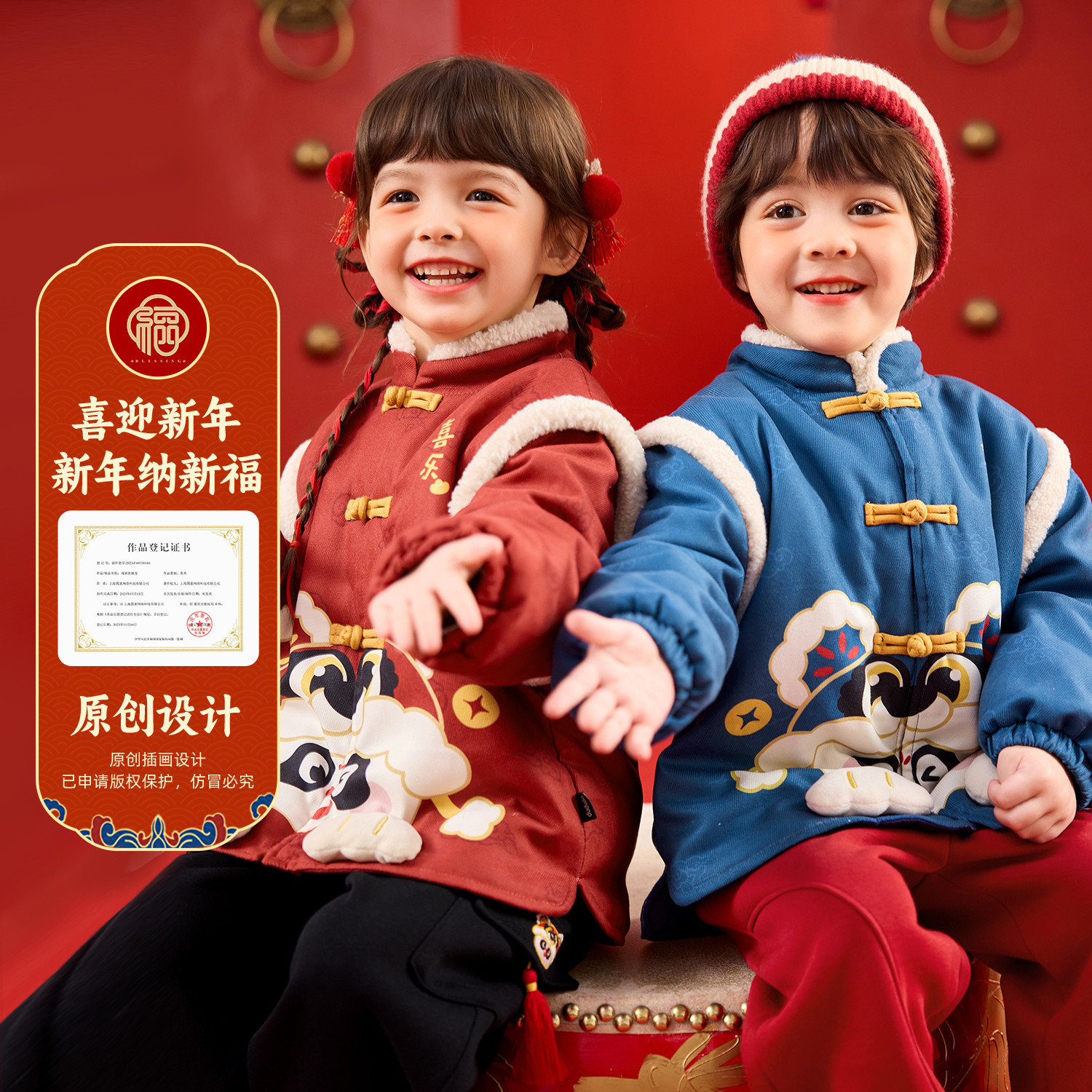 嘟嘟家男童唐装冬季棉服新年装女童棉衣宝宝拜年服儿童冬款外套潮