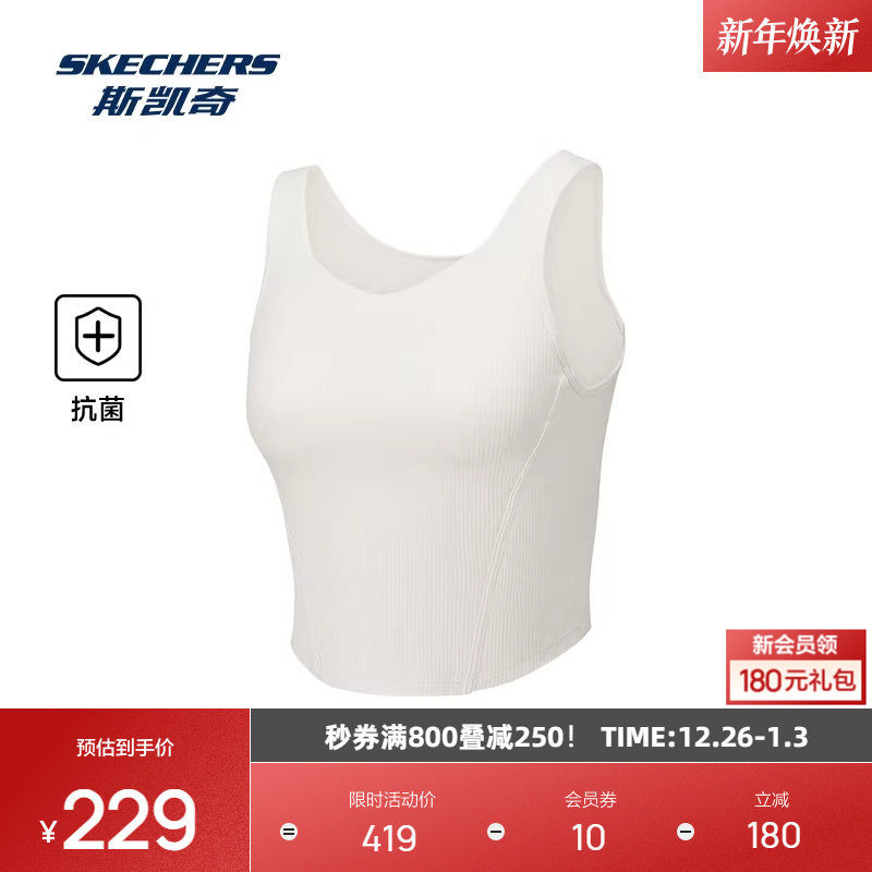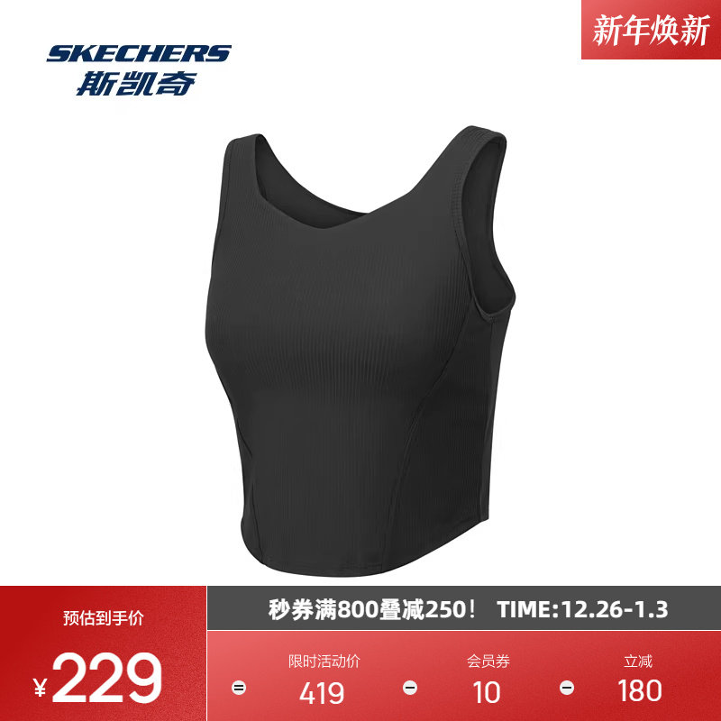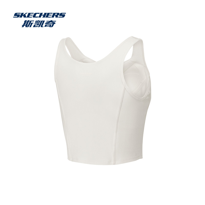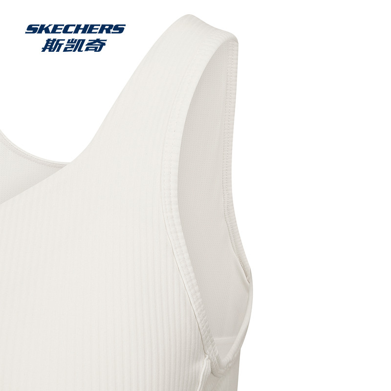 斯凯奇2025秋季女款运动背心内置胸垫修身鱼骨弹力宽松舒适休闲