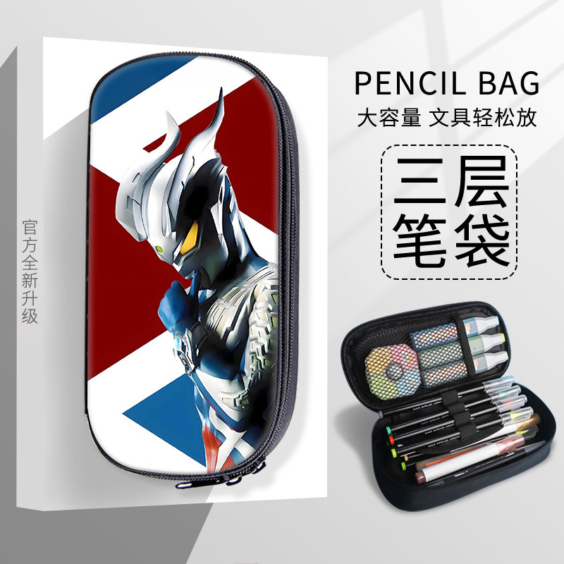 简约小众文具盒笔袋个性奥特曼周边文具盒男孩迪迦赛罗人气爆款笔盒高颜值防水耐脏文具袋1-6年级初中生通用